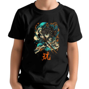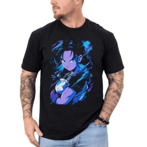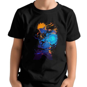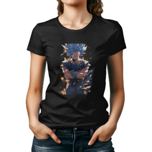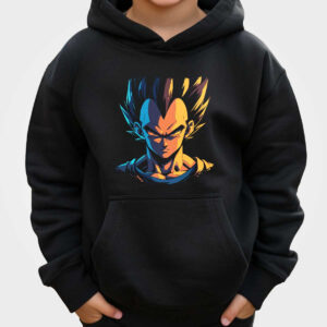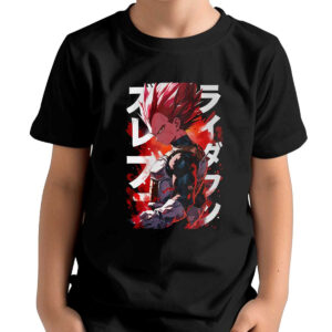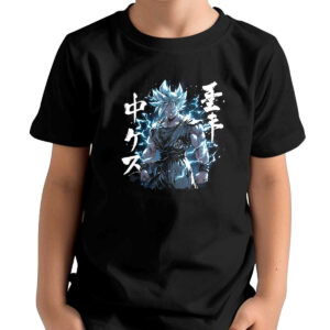 Polera Niña Estampada Frontal Vegito Con Aura Eléctrica En Mandarín Y Jet 24