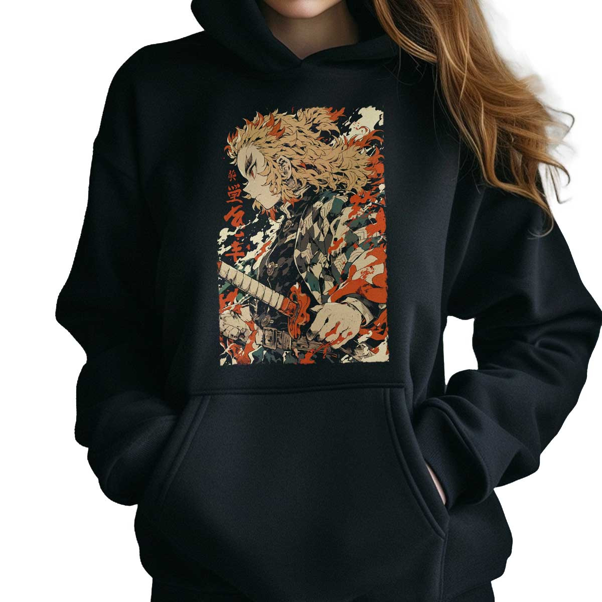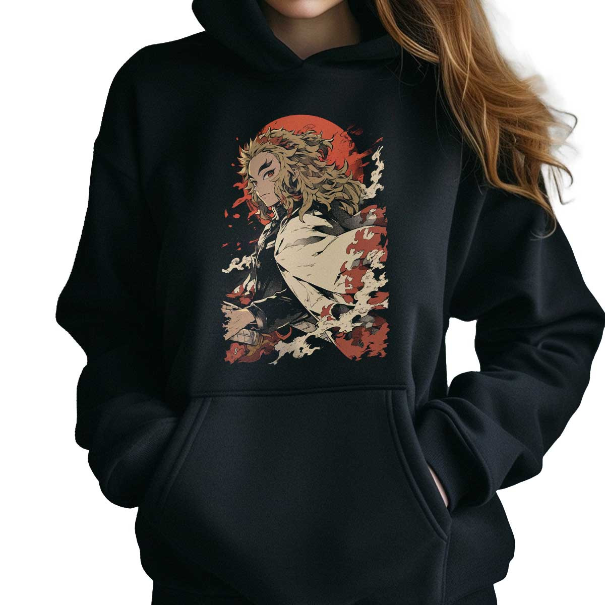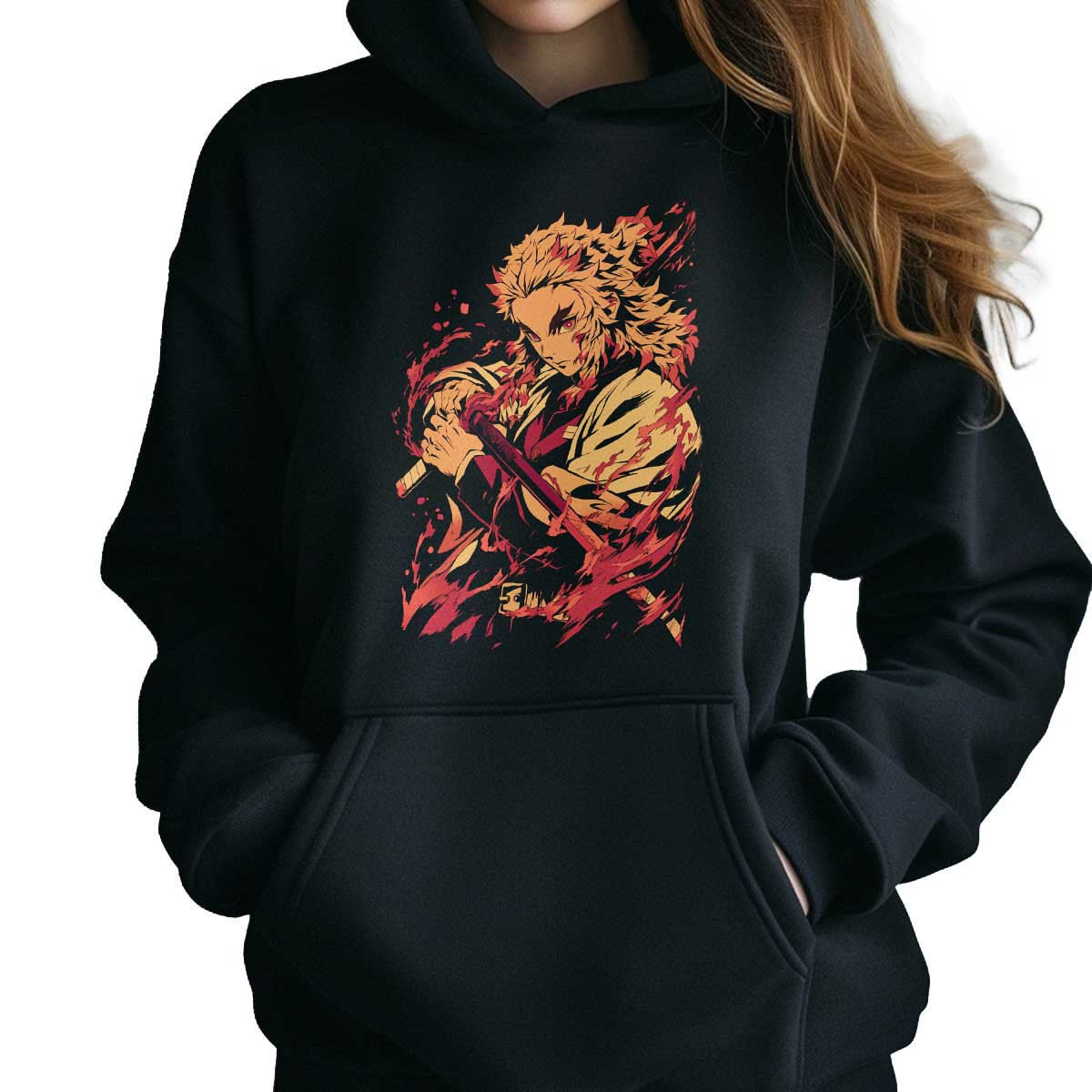 Polerones Anime Mujer Diseño Kyojuro Rengoku Furia Demoníaca