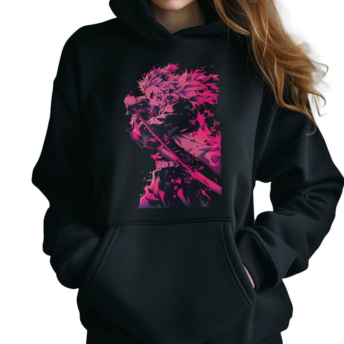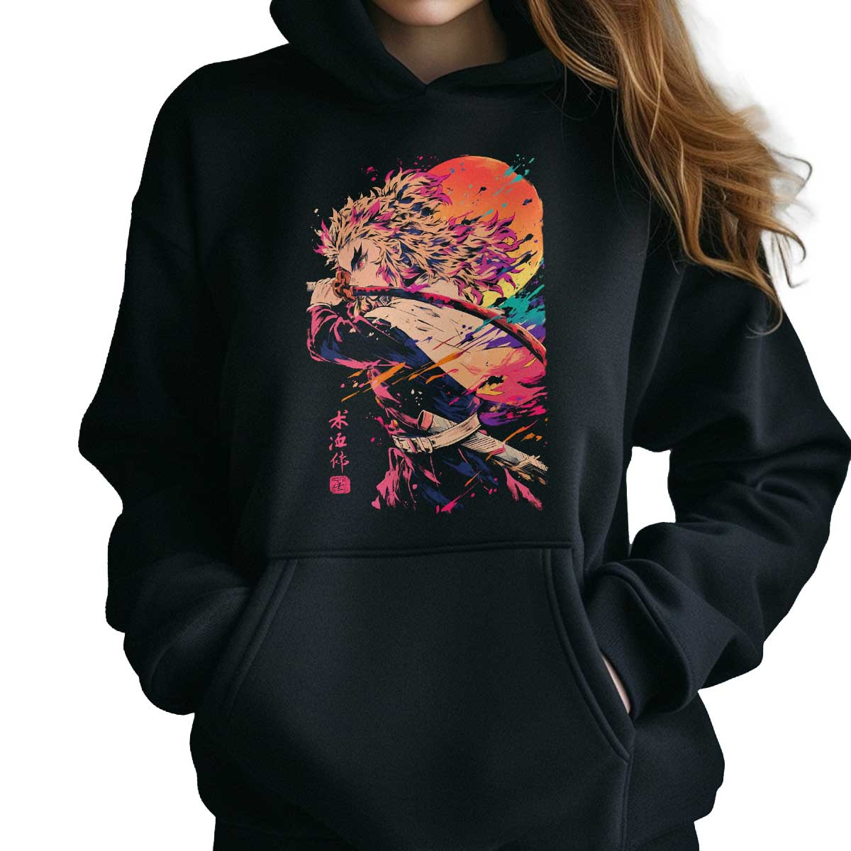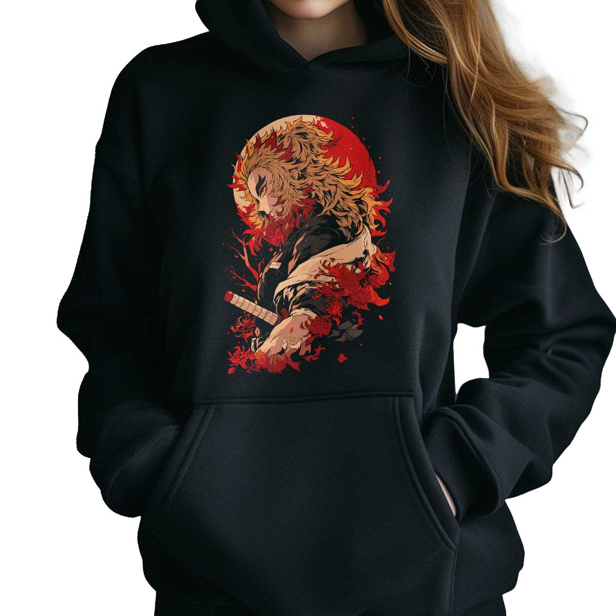 Polerones Anime Mujer Diseño Kyojuro Rengoku Furia Demoníaca
