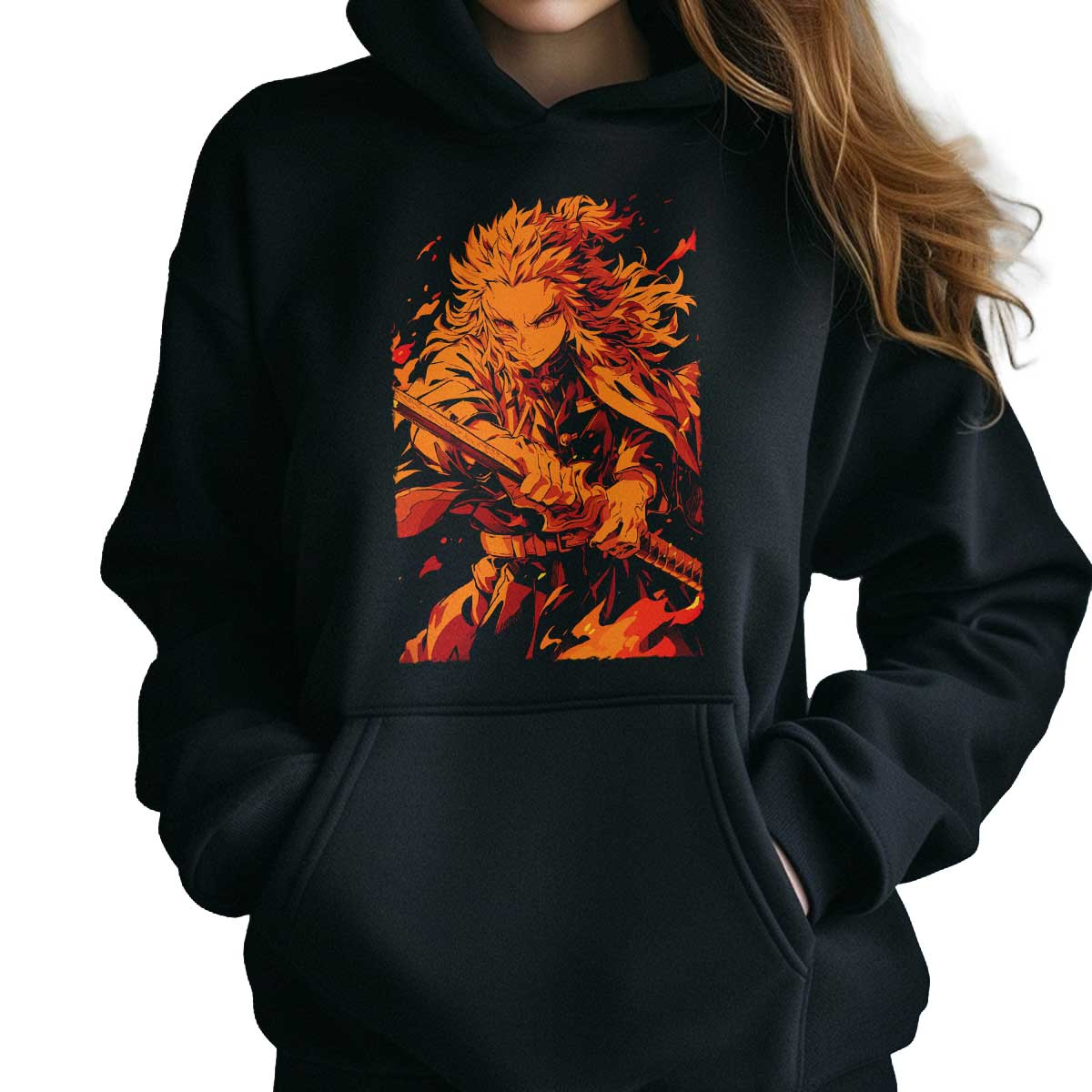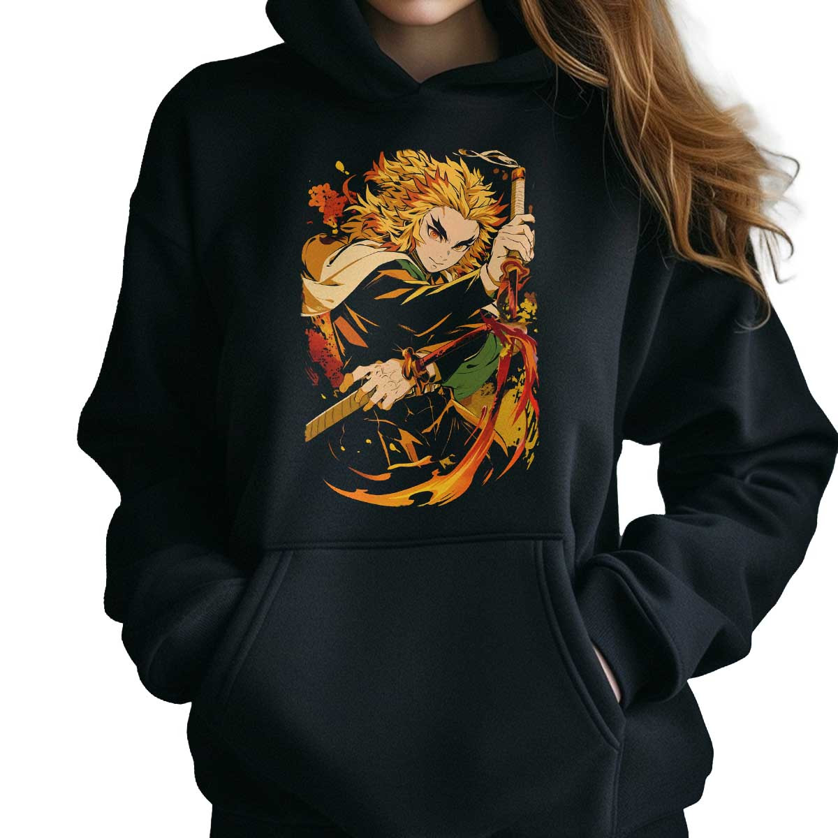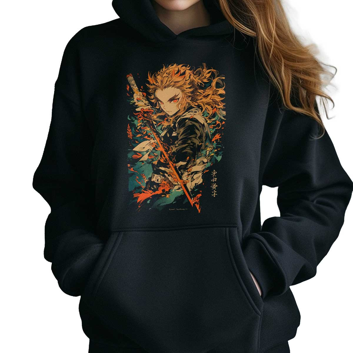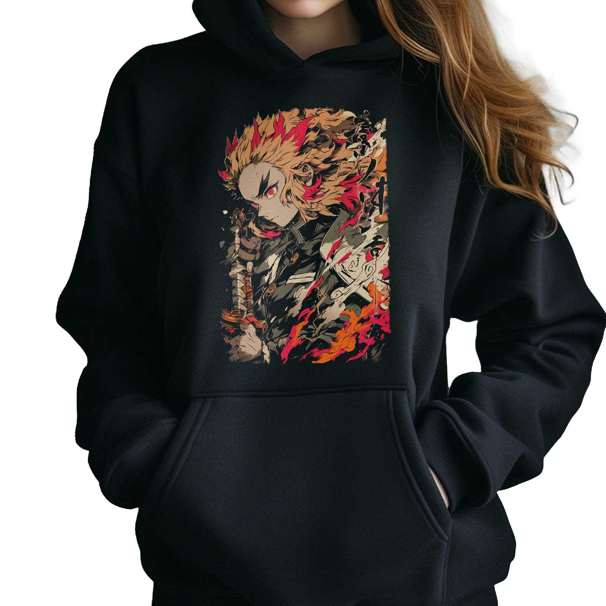 Hoodie Anime Mujer Kyojuro Rengoku Demon Slayer Dinámico
