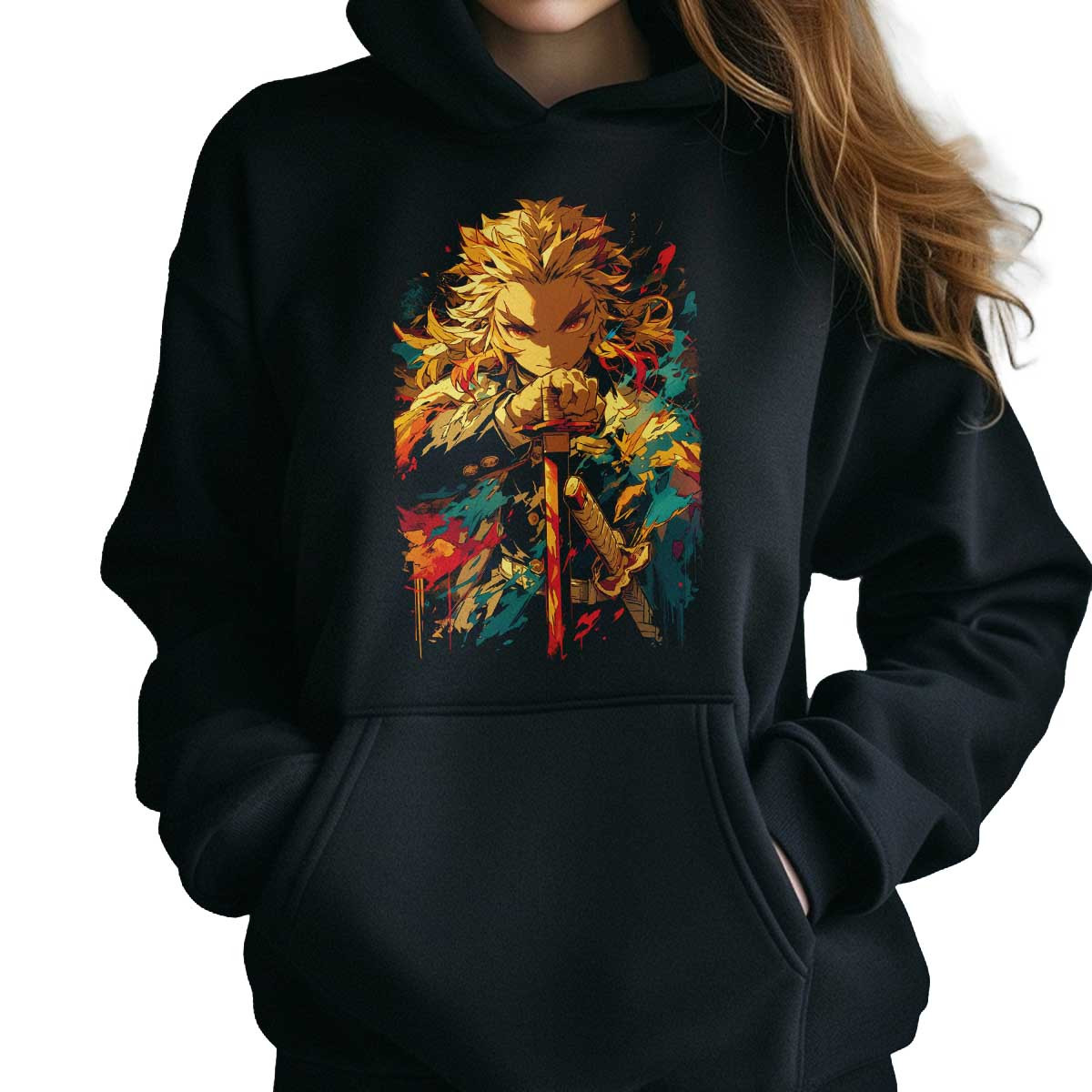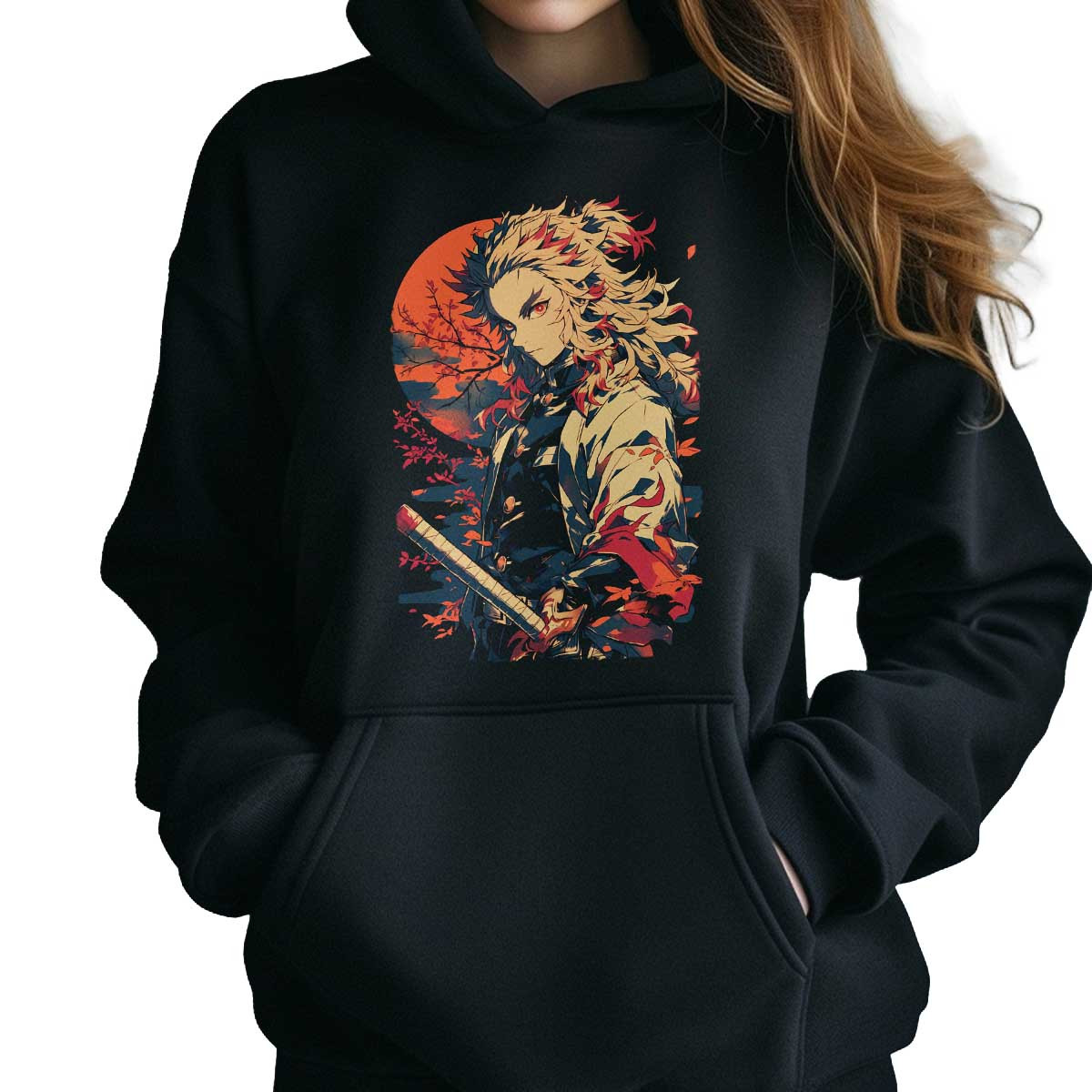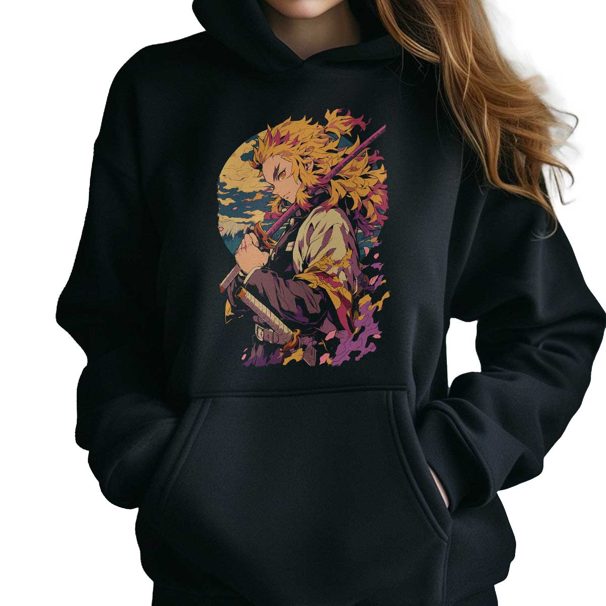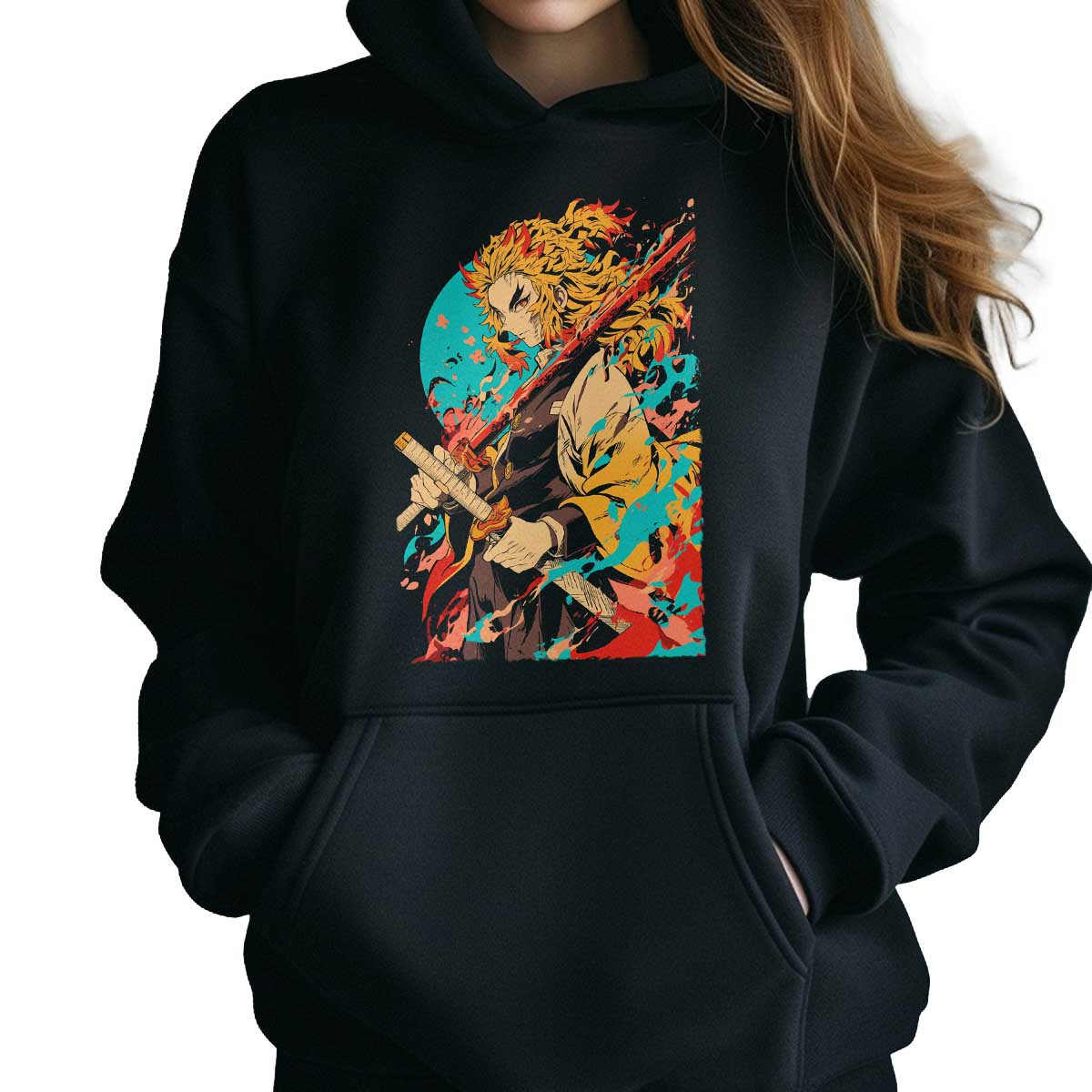 Hoodie Anime Mujer Kyojuro Rengoku Demon Slayer Dinámico