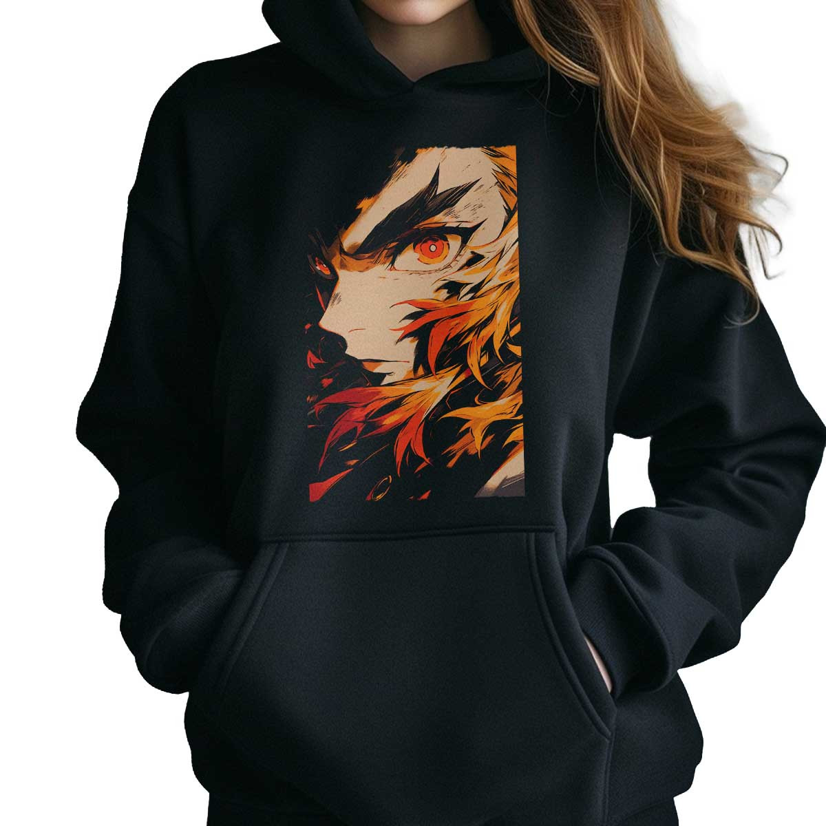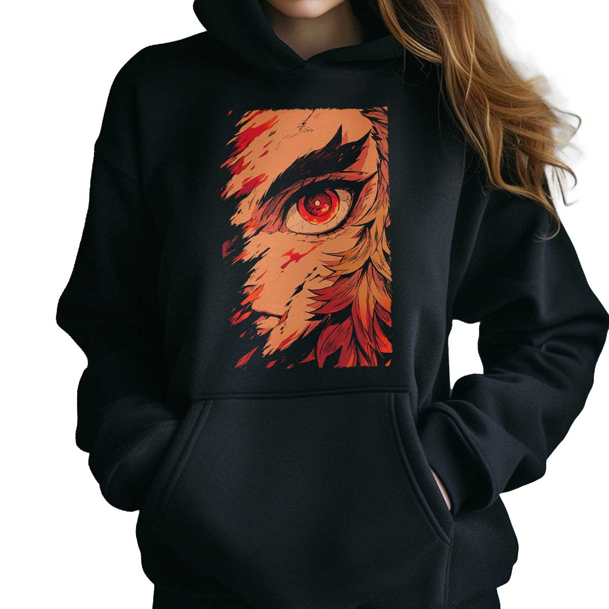 Hoodie Anime Mujer Kyojuro Rengoku Ojos De Cerca