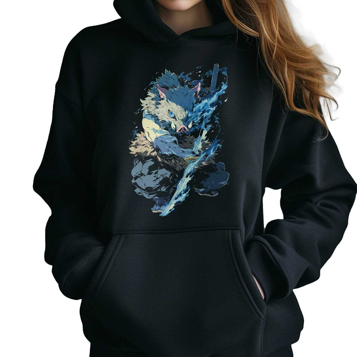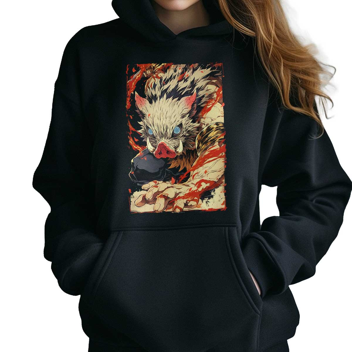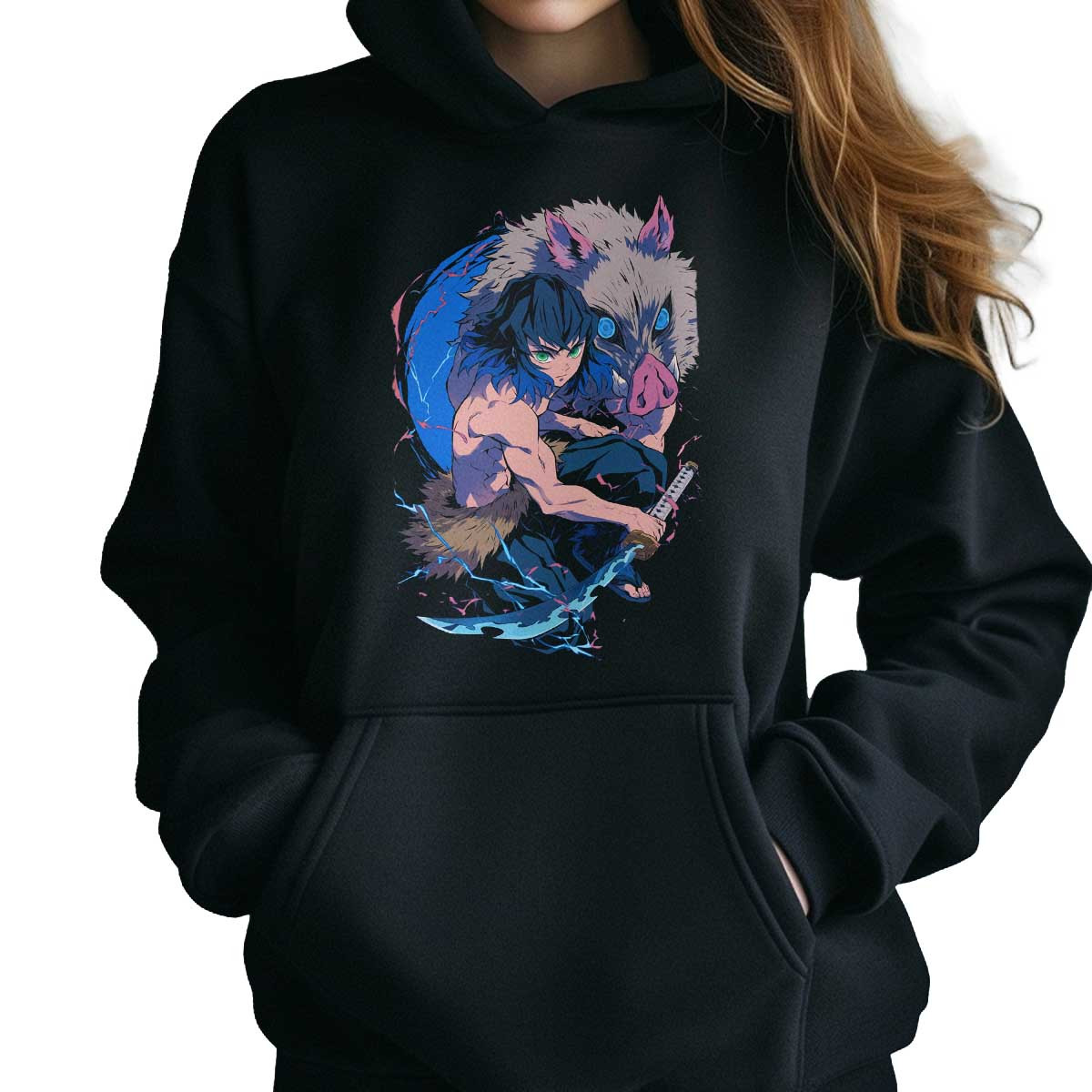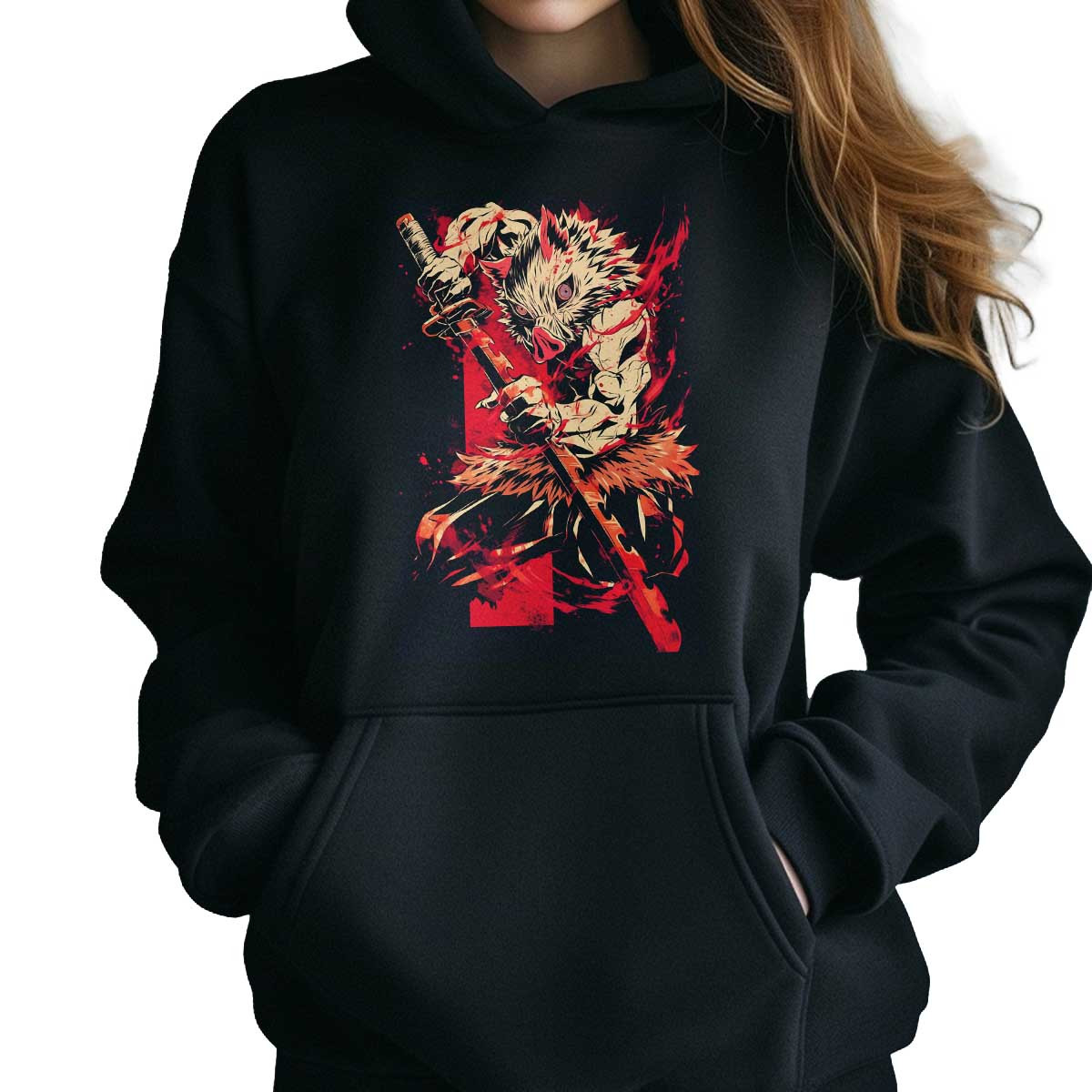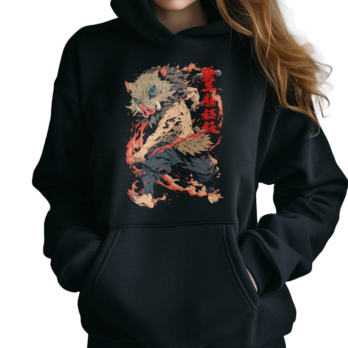 Hoodie Anime Mujer Inosuke Hashibira Batalla Demonio 03