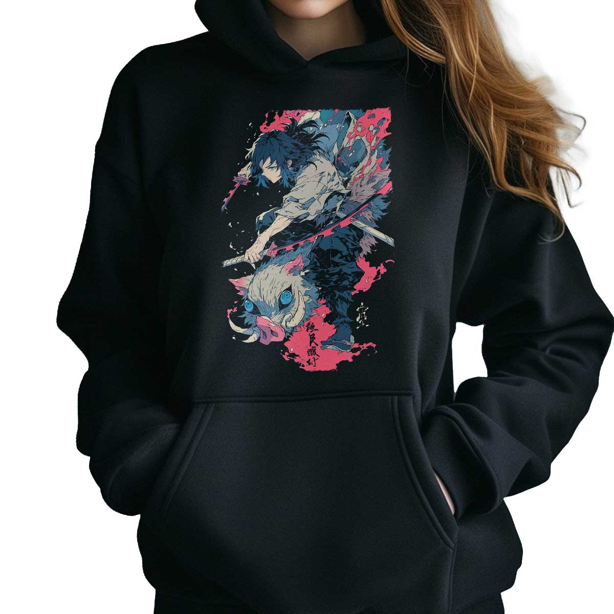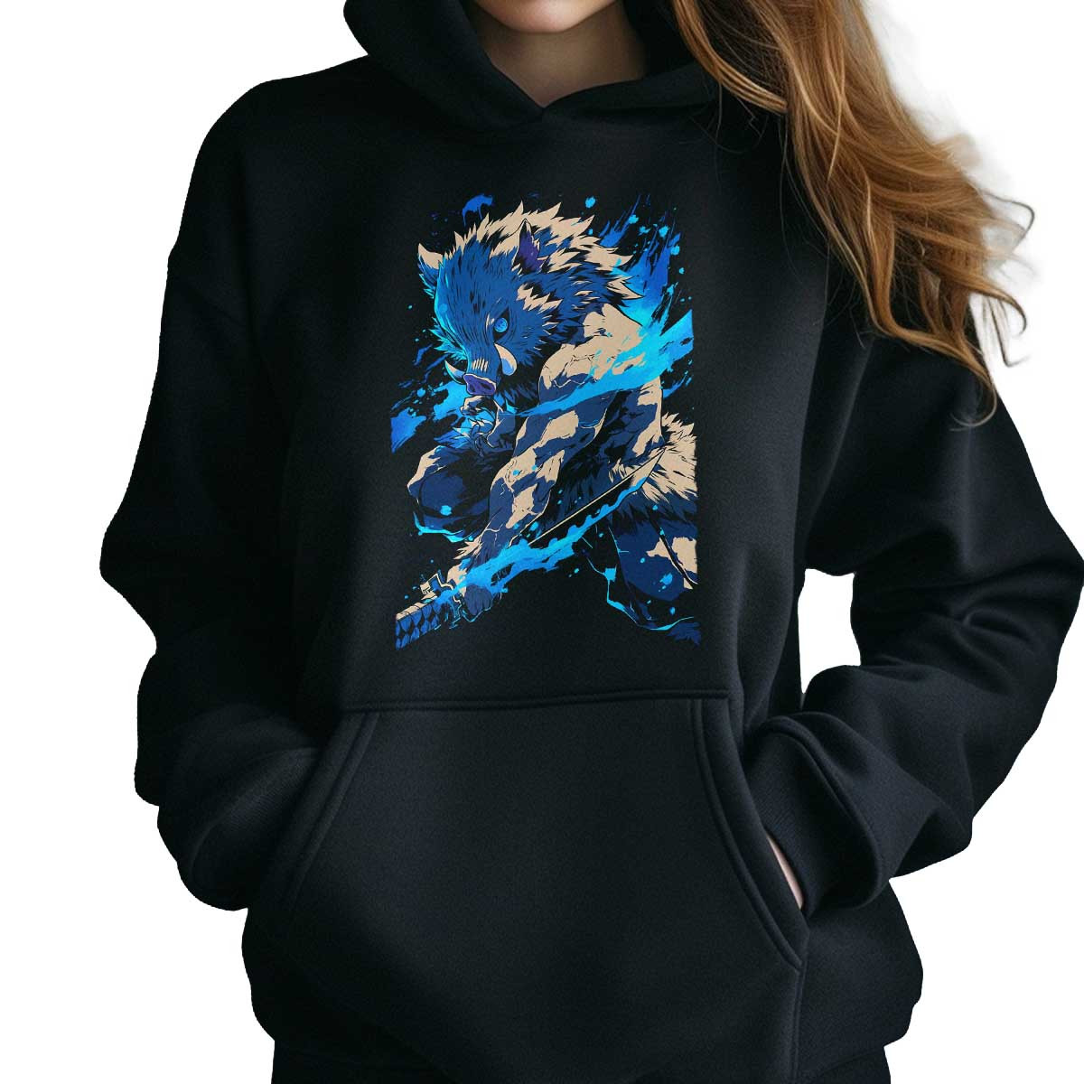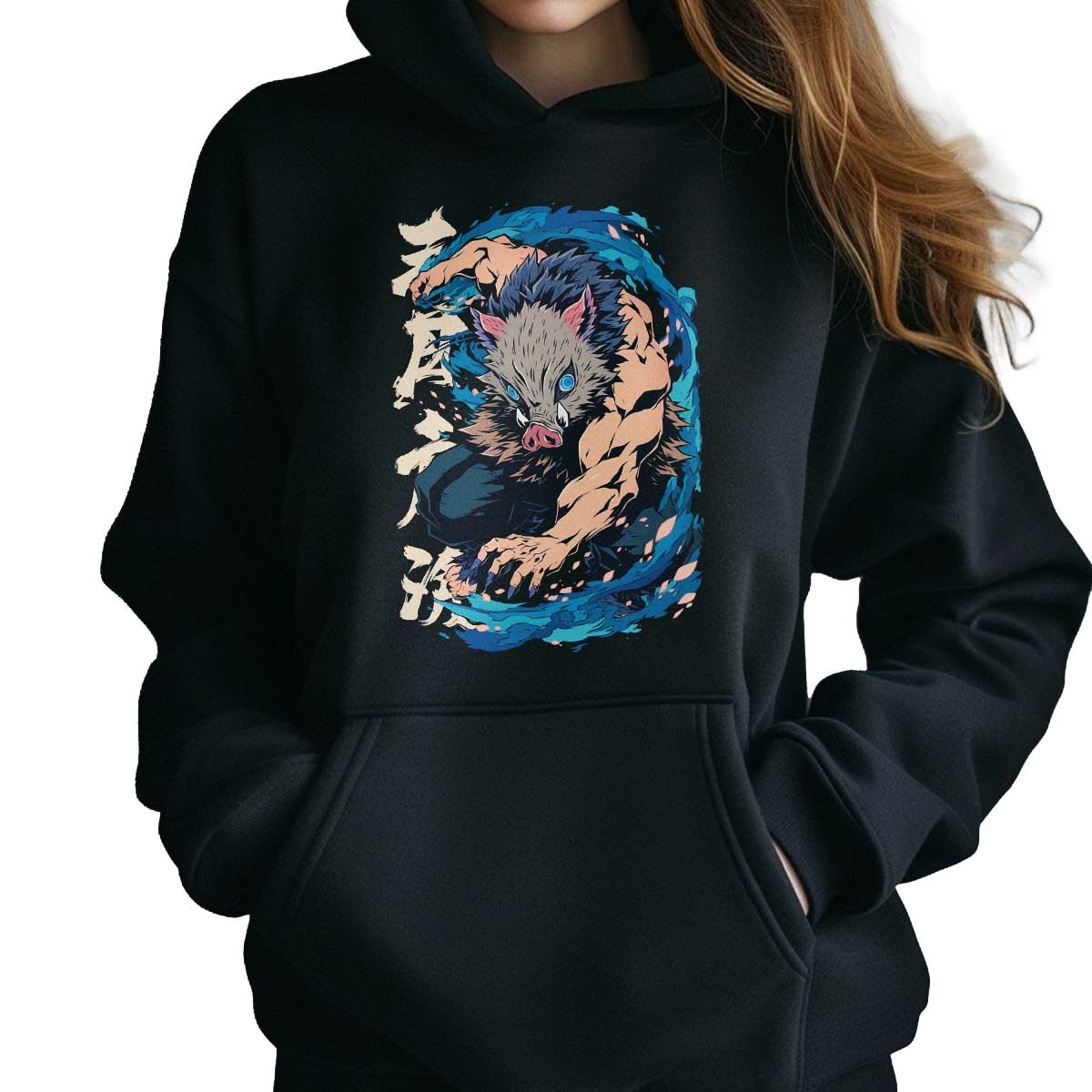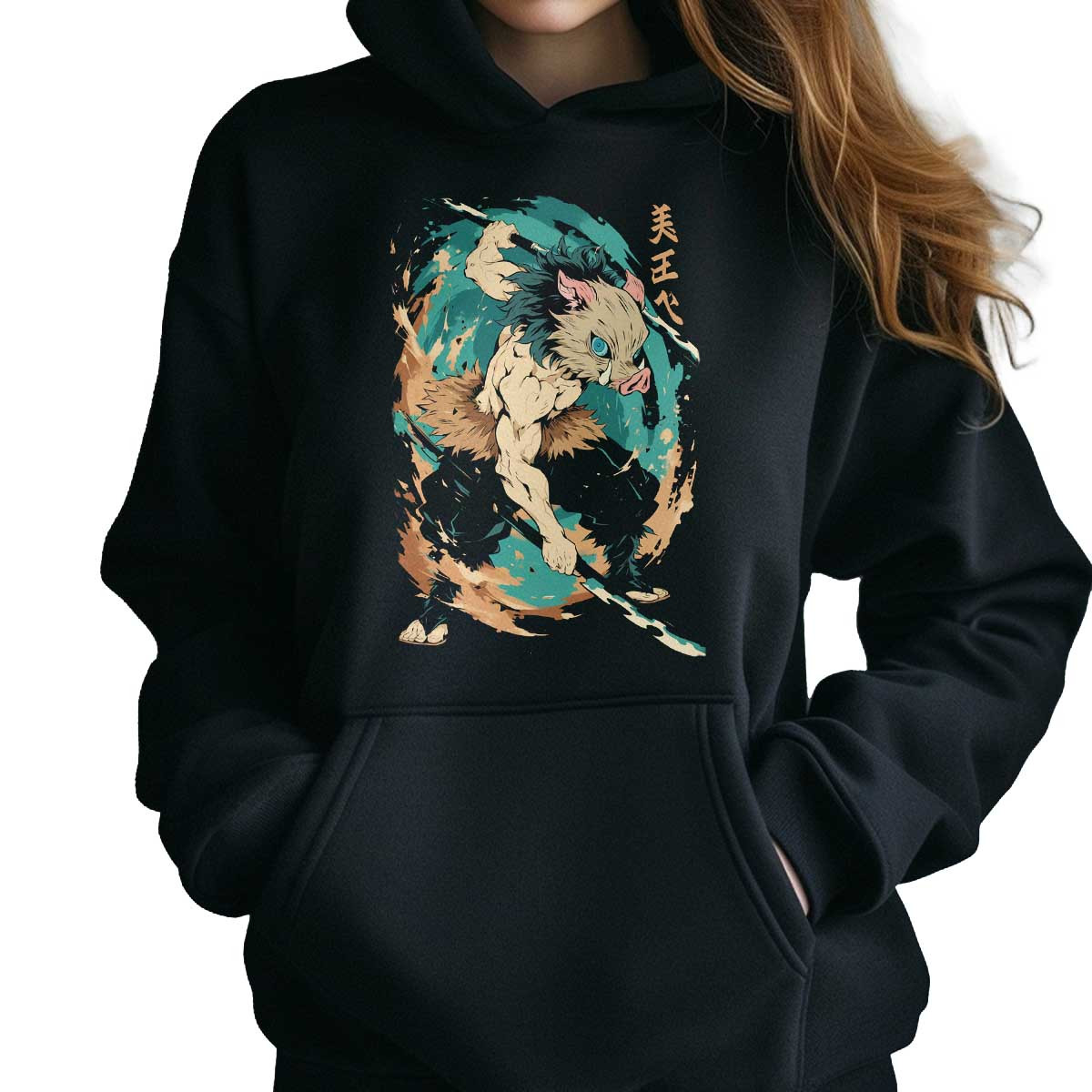 Hoodie Anime Mujer Inosuke Hashibira Batalla Demonio 03