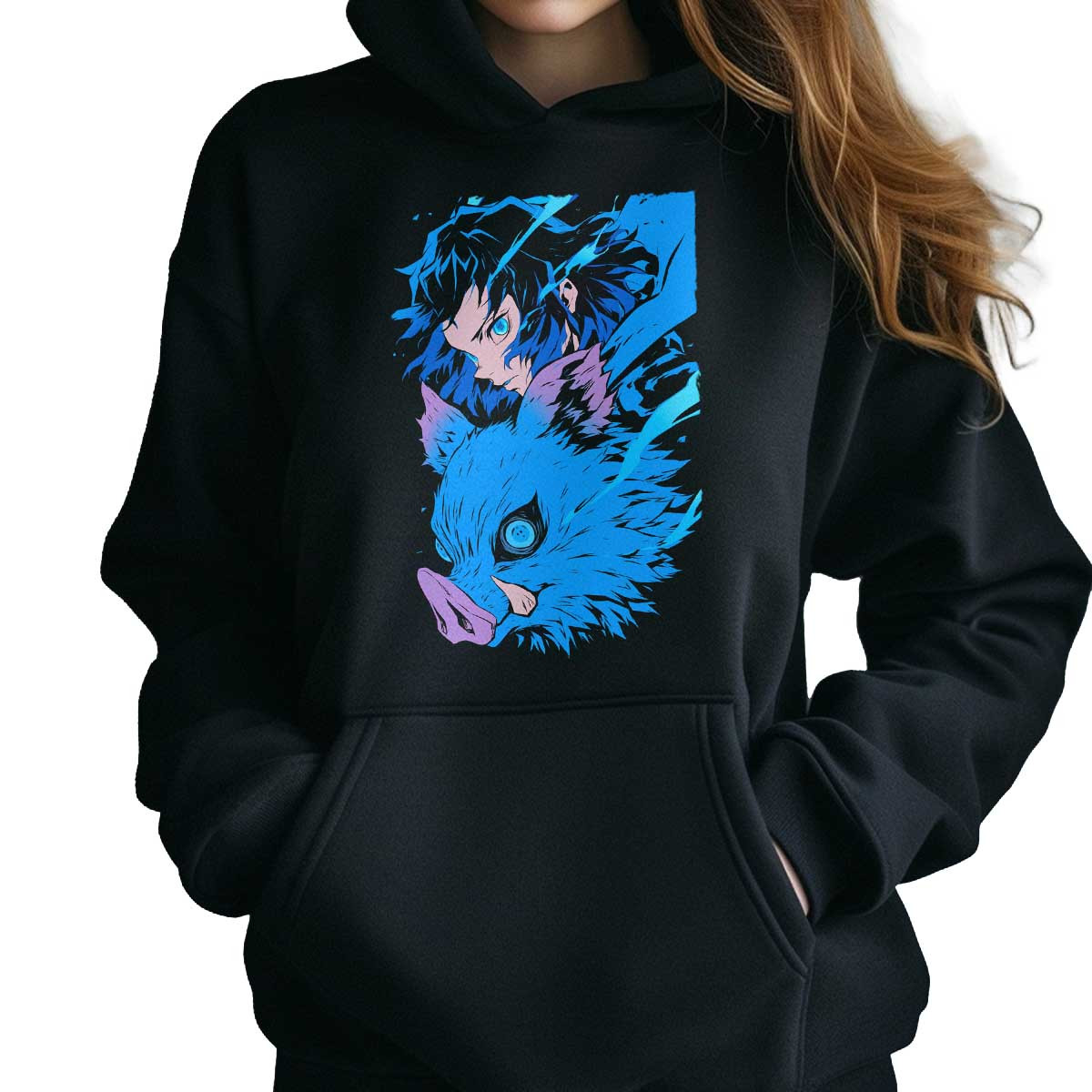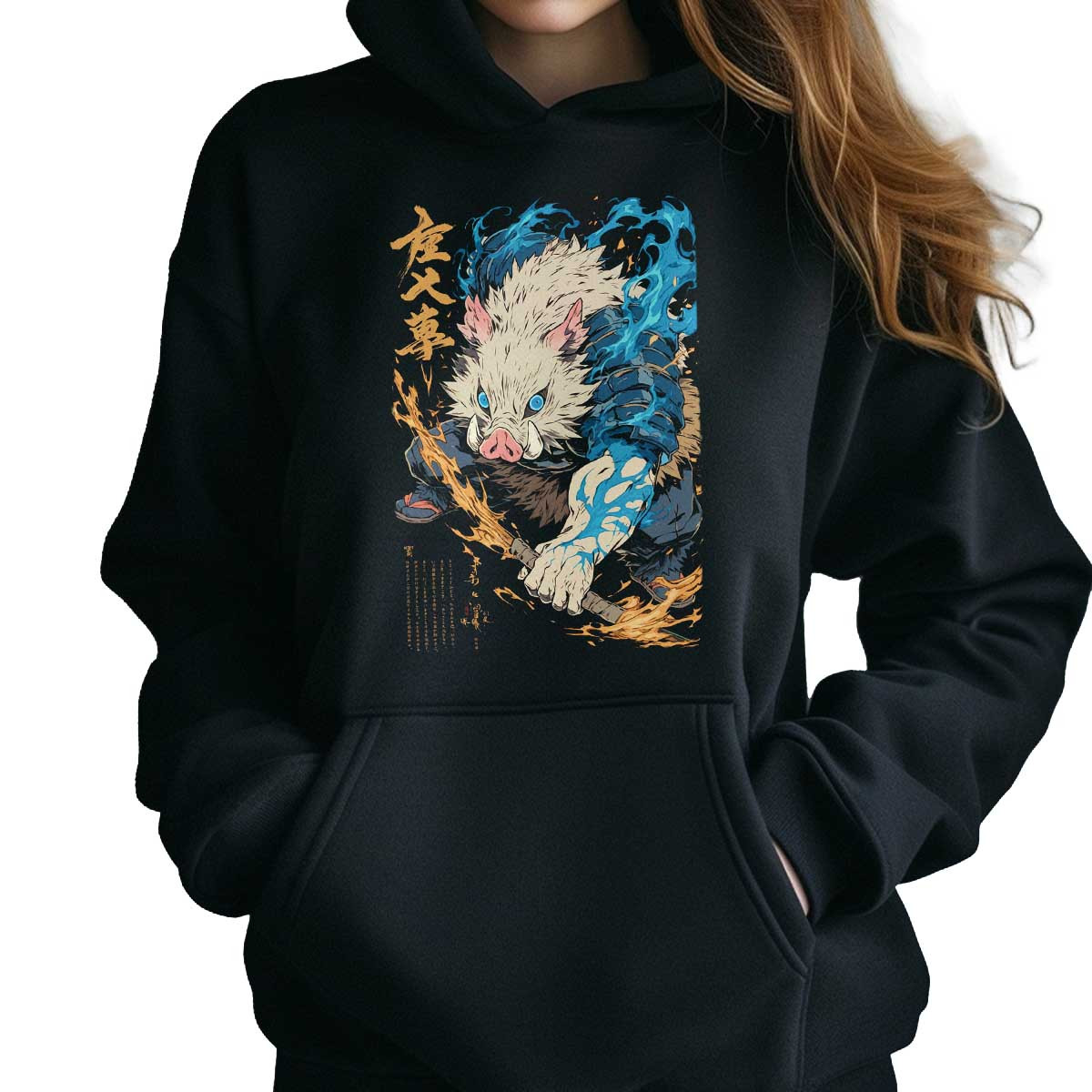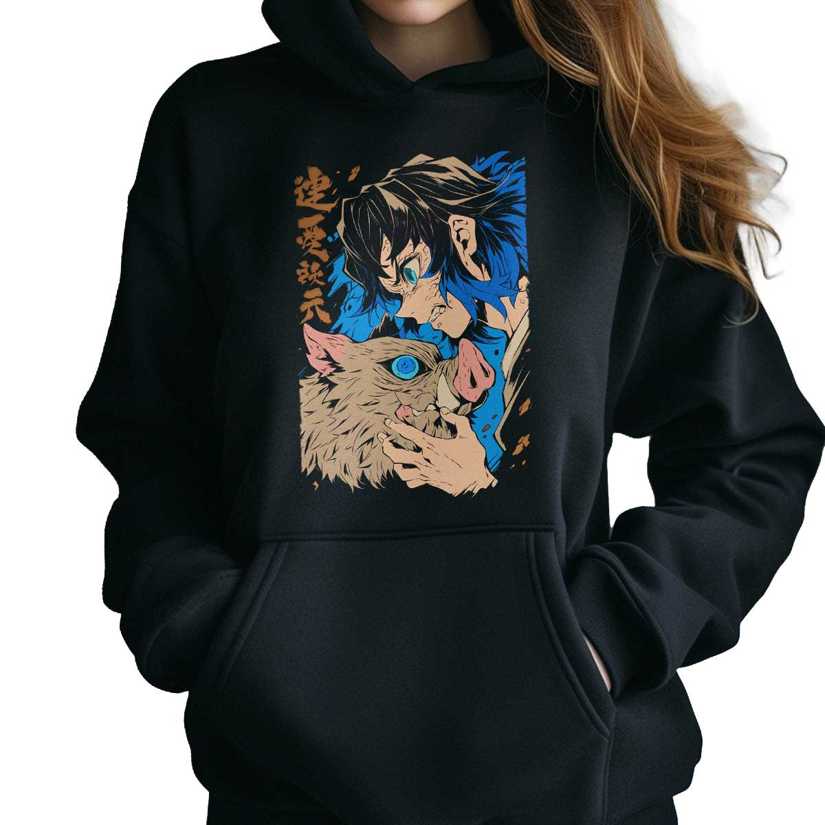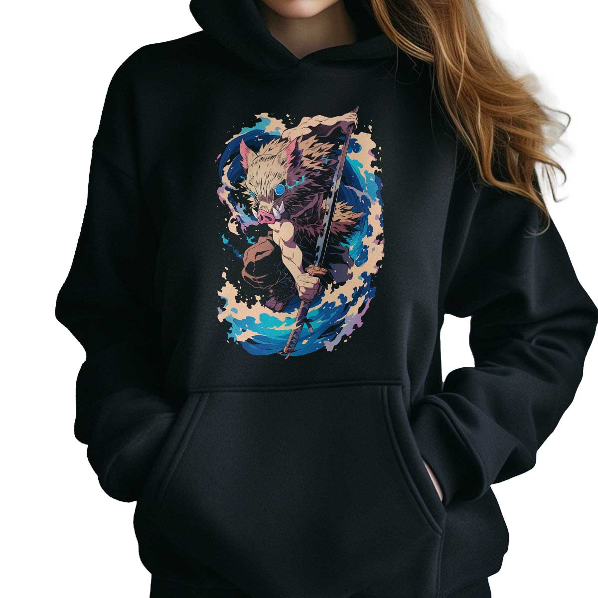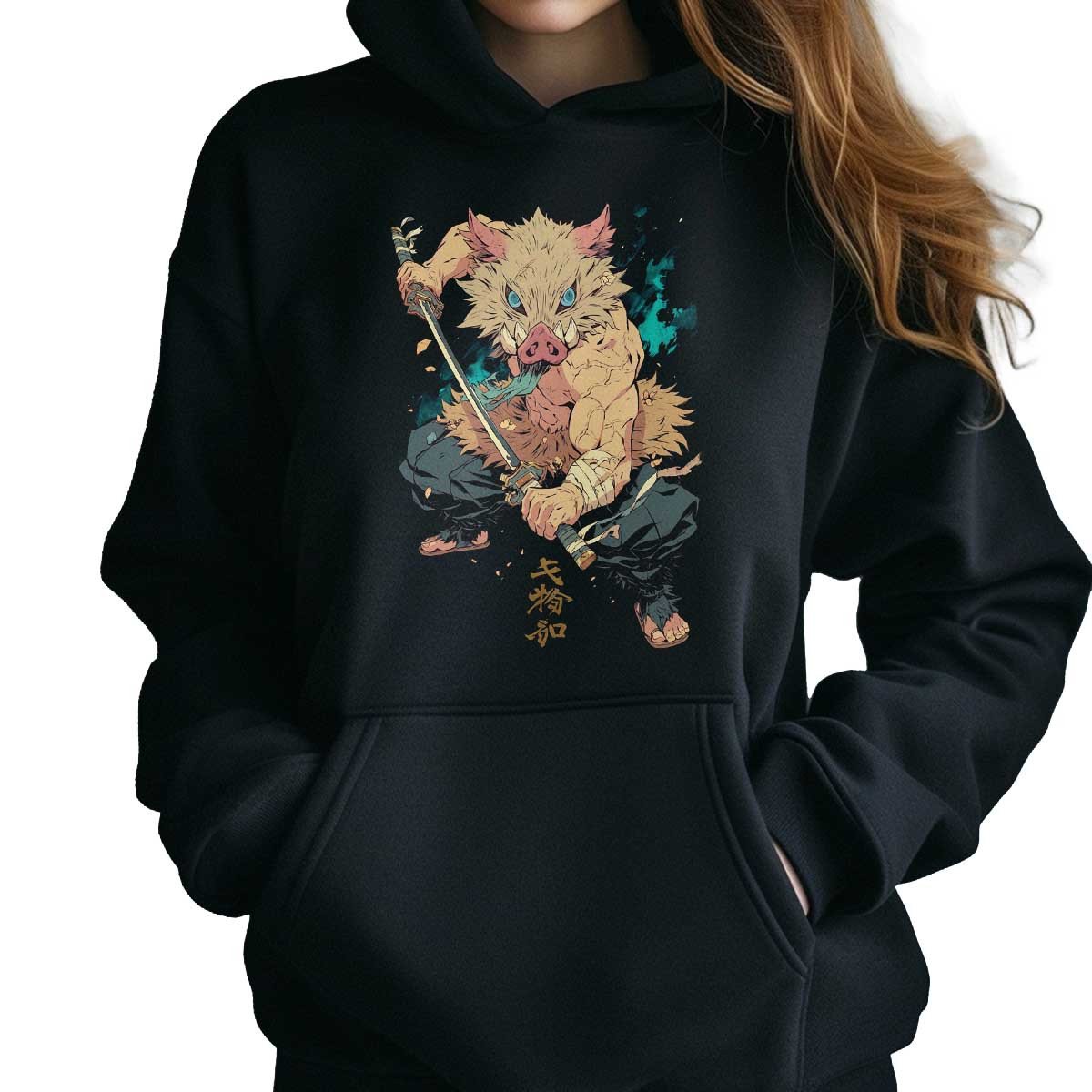 Hoodie Anime Mujer Inosuke Hashibira Batalla Demonio 03