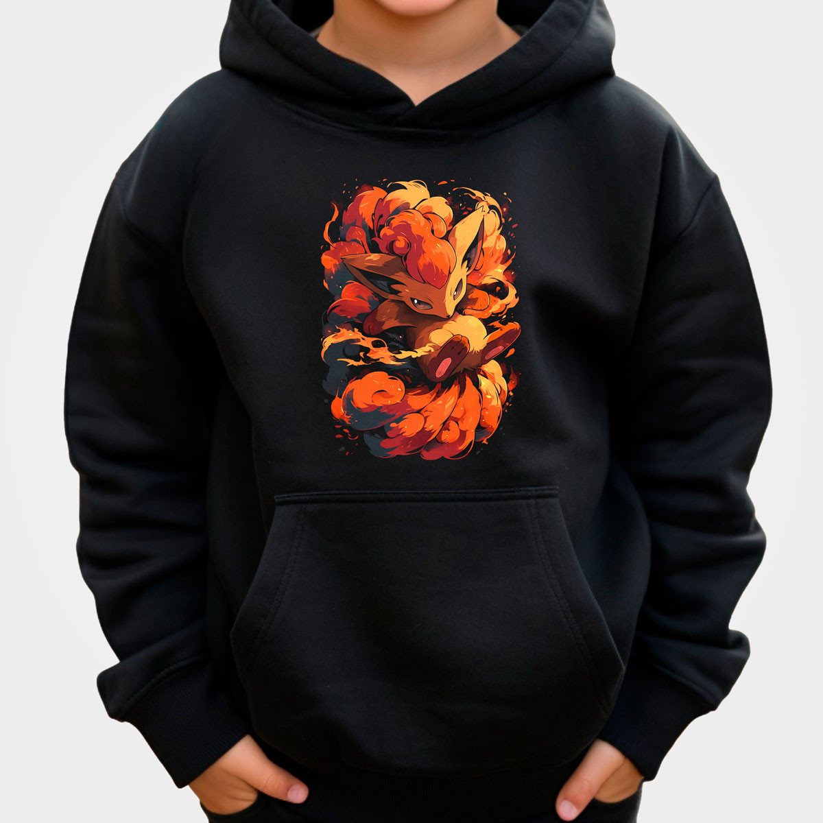 Hoodie Anime Niño Vulpix Cute Pokémon Batallas Negra
