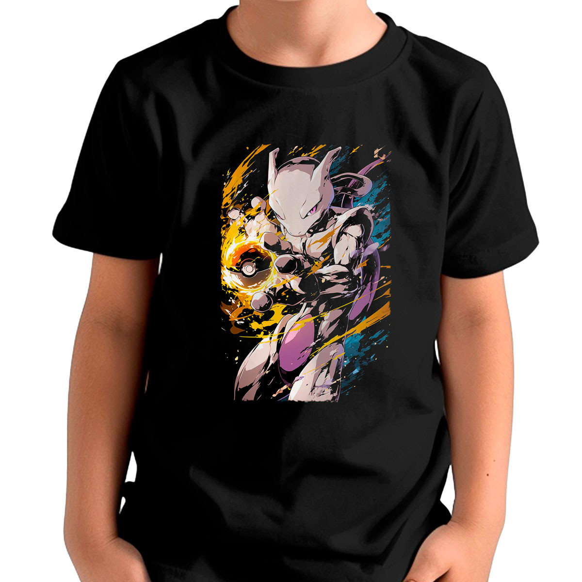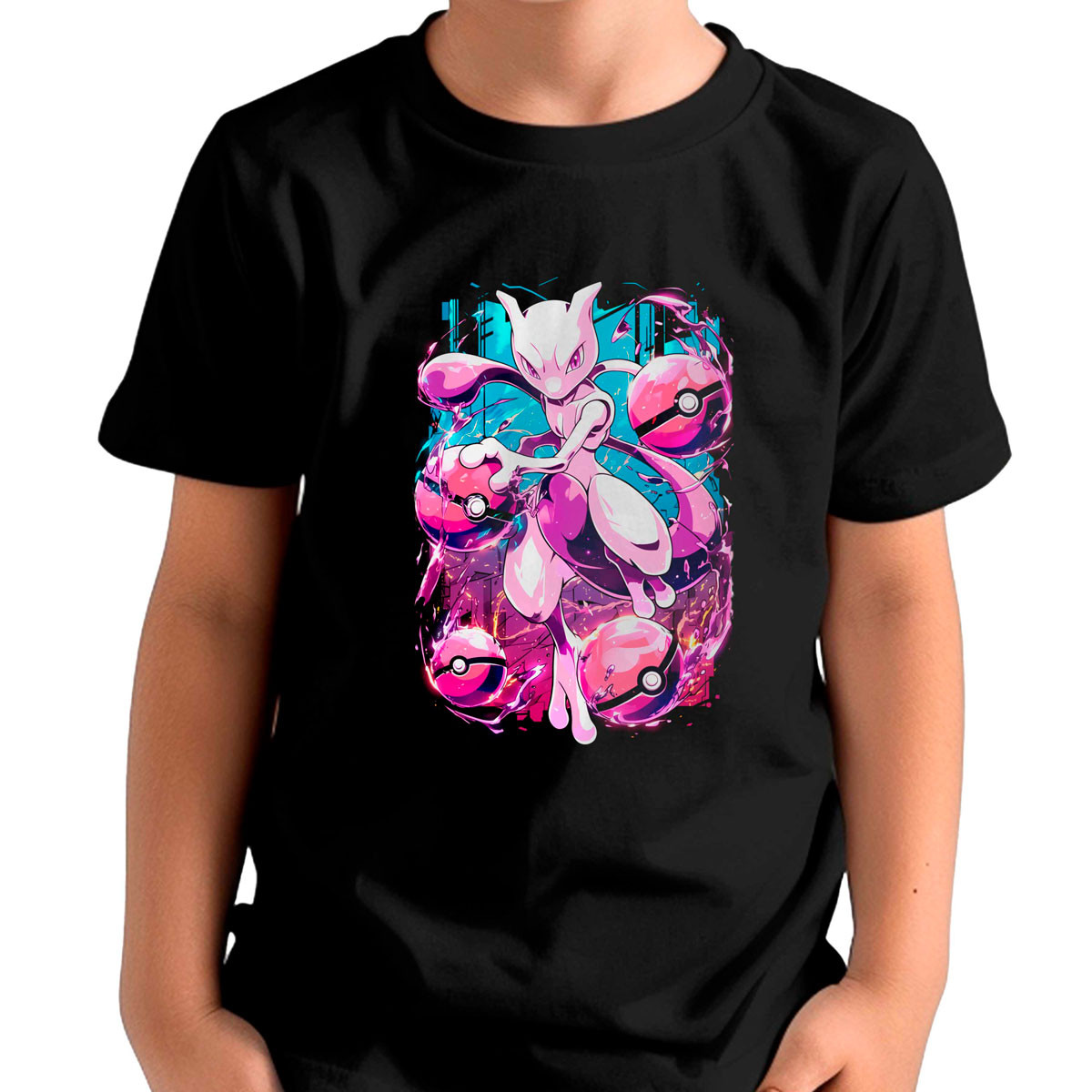 Polera Niños Mewtwo Pokemon Anime Negro Fondo 34