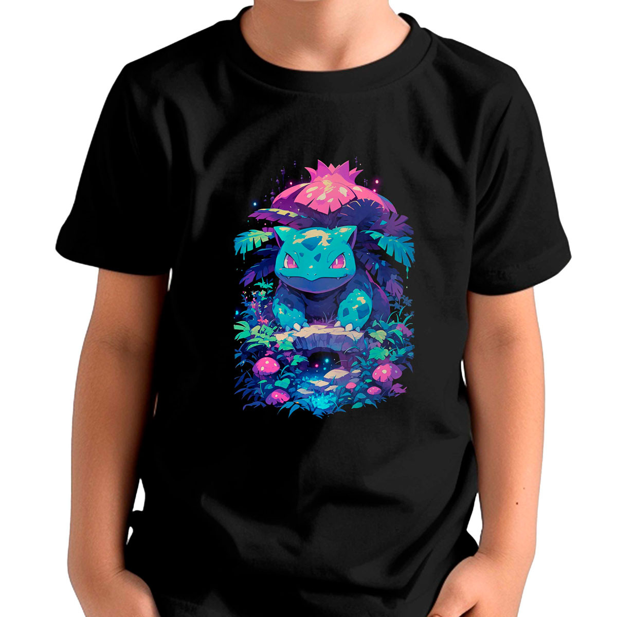 Polera Niños Venusaur Worry Seed Negro Brillo