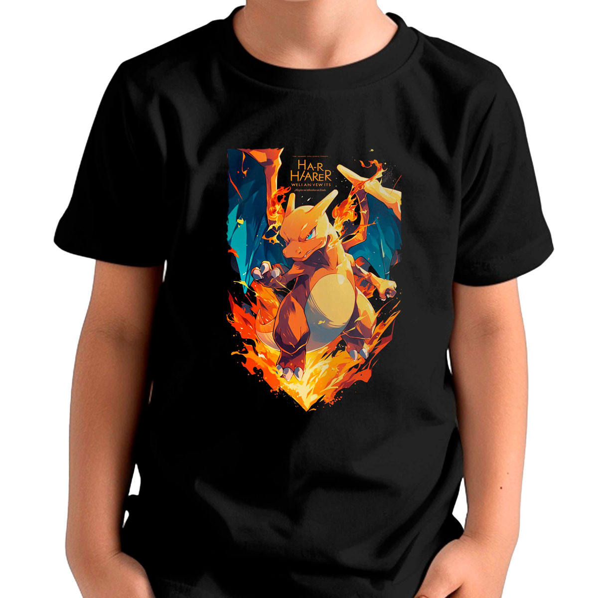 Polera Niña Diseño Charizard Pokemon Anime Negro 34