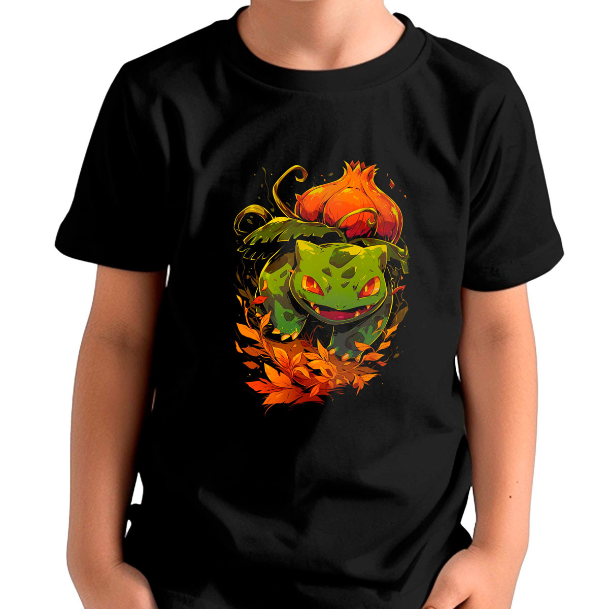 Polera Niños Diseño Bulbasaur Pokemon Negro