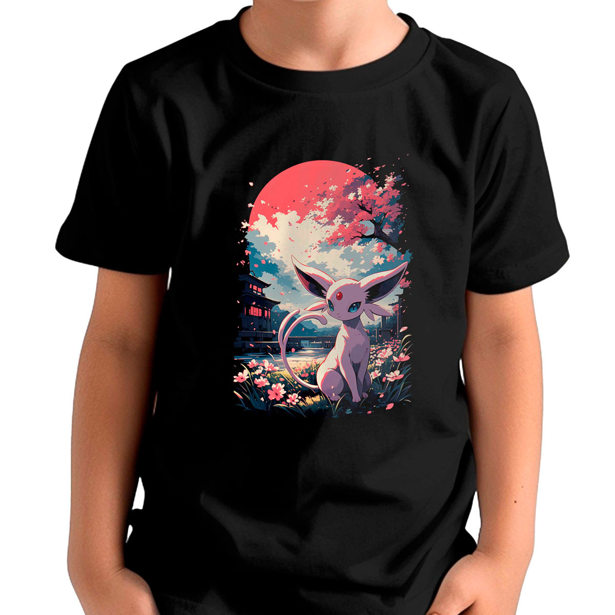 Polera Niño Estampada Pokédex Espeon Cherry Blossoms