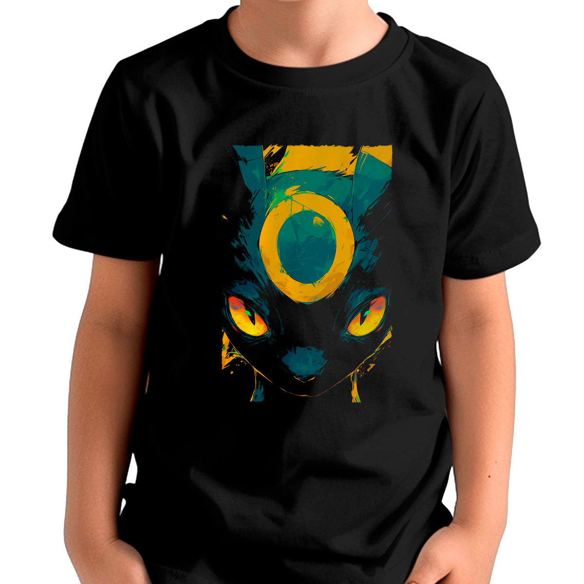 Polera Niño Umbreon Pokemon Face CloseUp Diseño Negro Pokédex 34