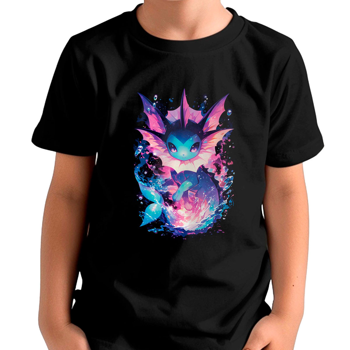 Polera Niños Design Vaporeon Anime Negro Brillante
