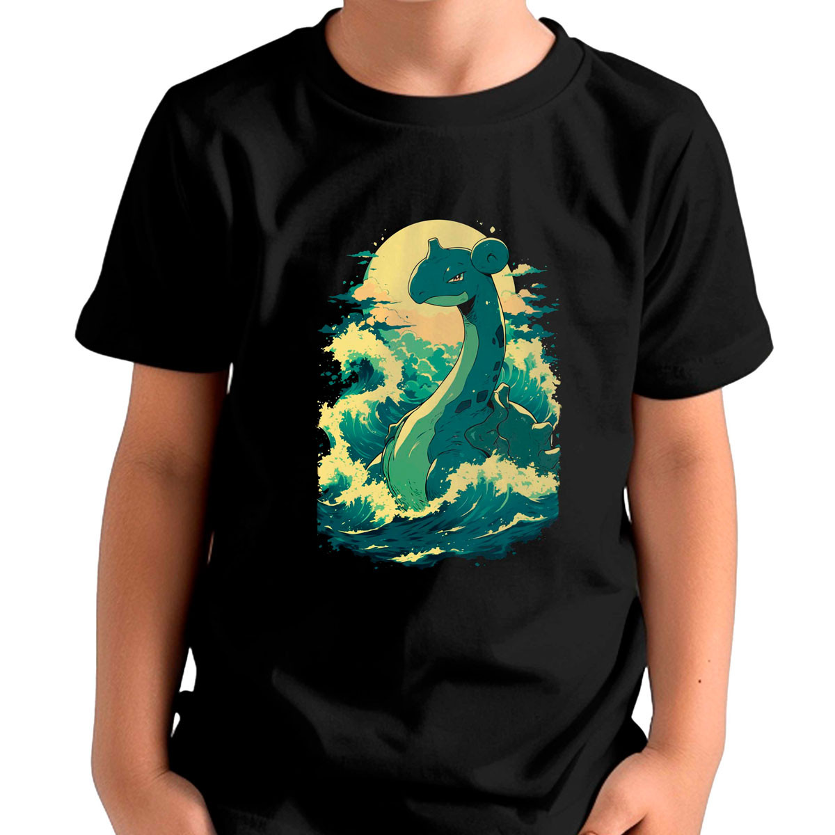 Polera Niños Lapras Anime Pokemon Negro Bac 34