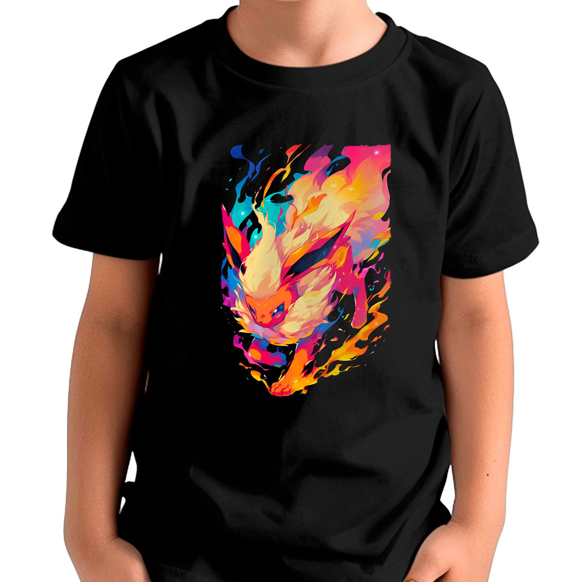Polera Niños Diseño Flareon Ojos Detalle Pokémon 34