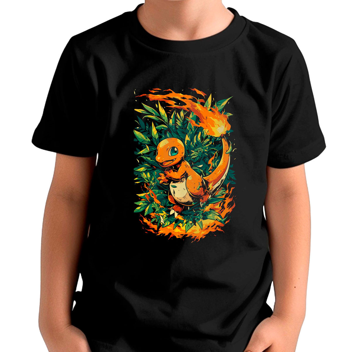Polera Niño Charmander Silueta Pokémon Manga Corta