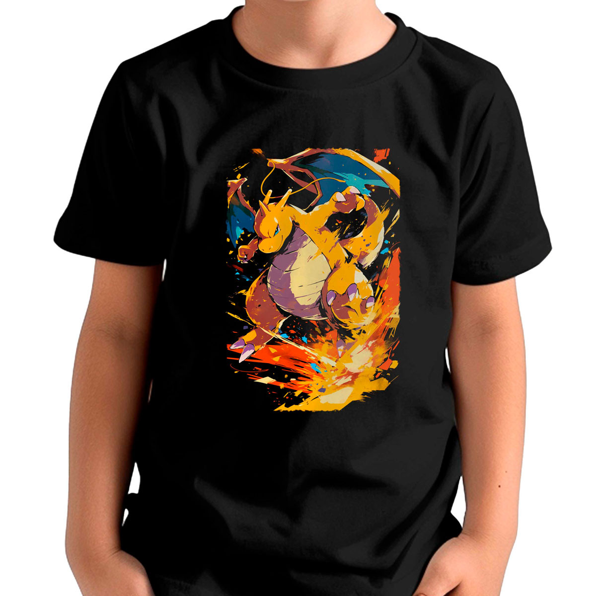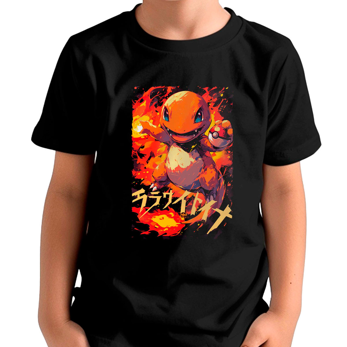 Polera Niño Estampada Frontal Batalla Charmander Shiny Pokémon Anime