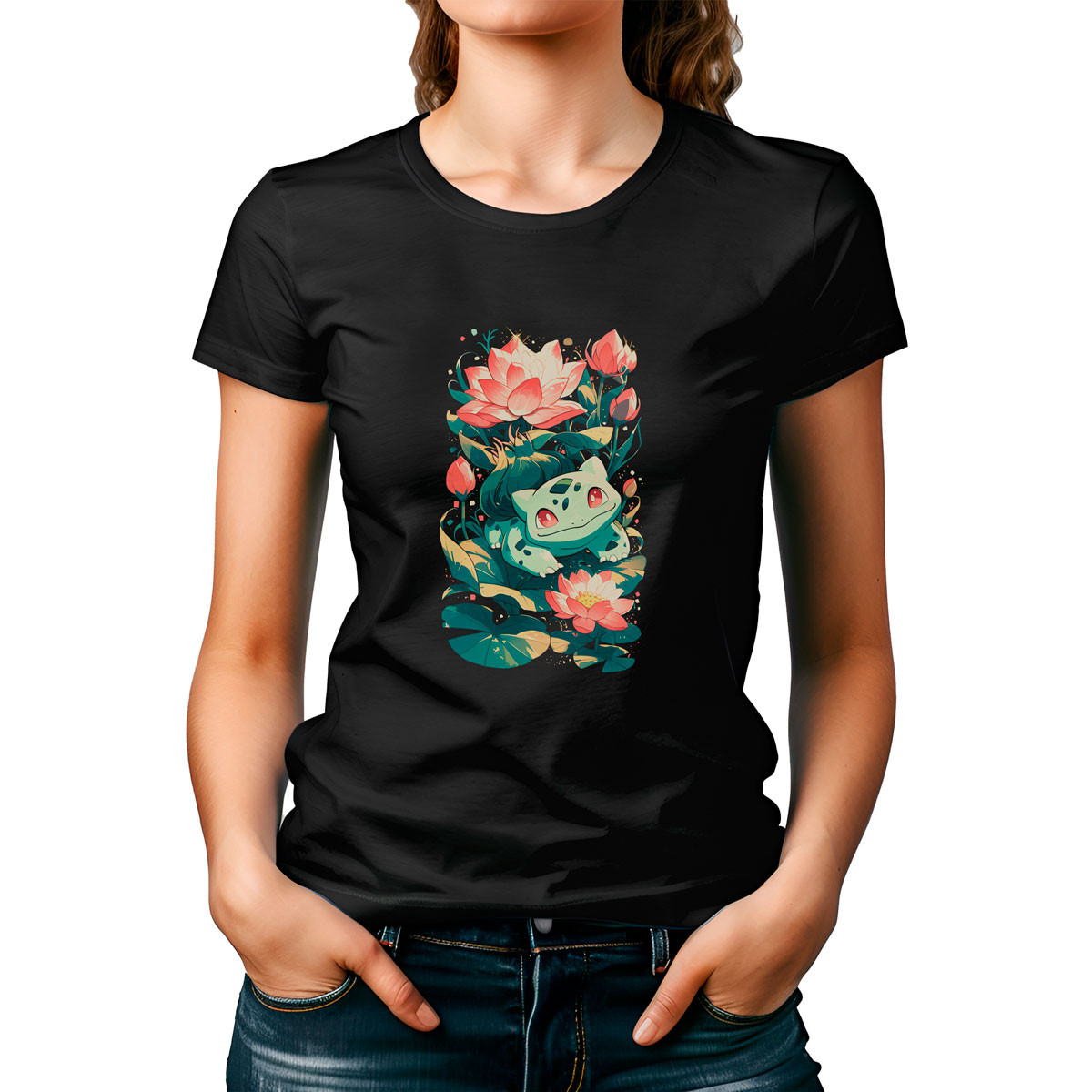 Poleras Mujer Negra Brillante Diseño Bulbasaur Pokémon Anime 33
