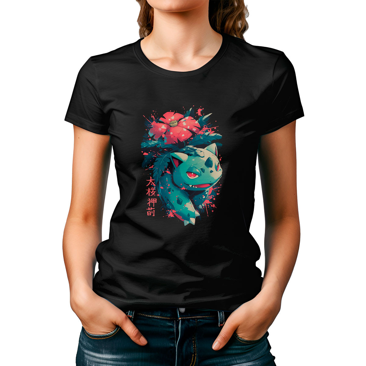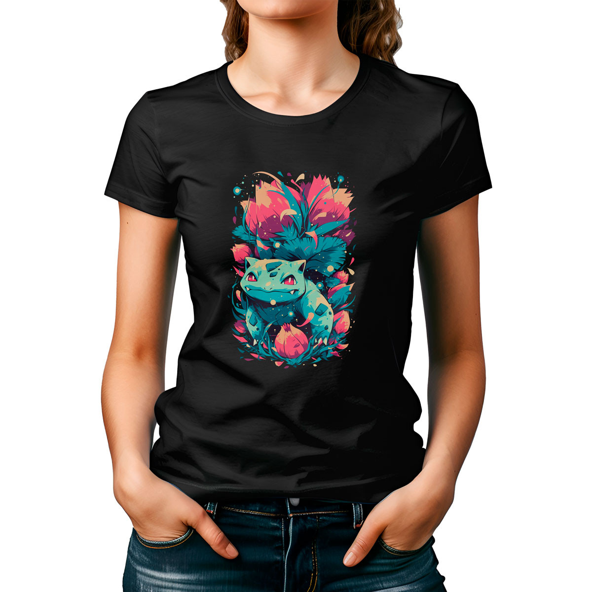 Polera Suave Diseño Shiny Ivysaur Pokemon Negro Ba 13