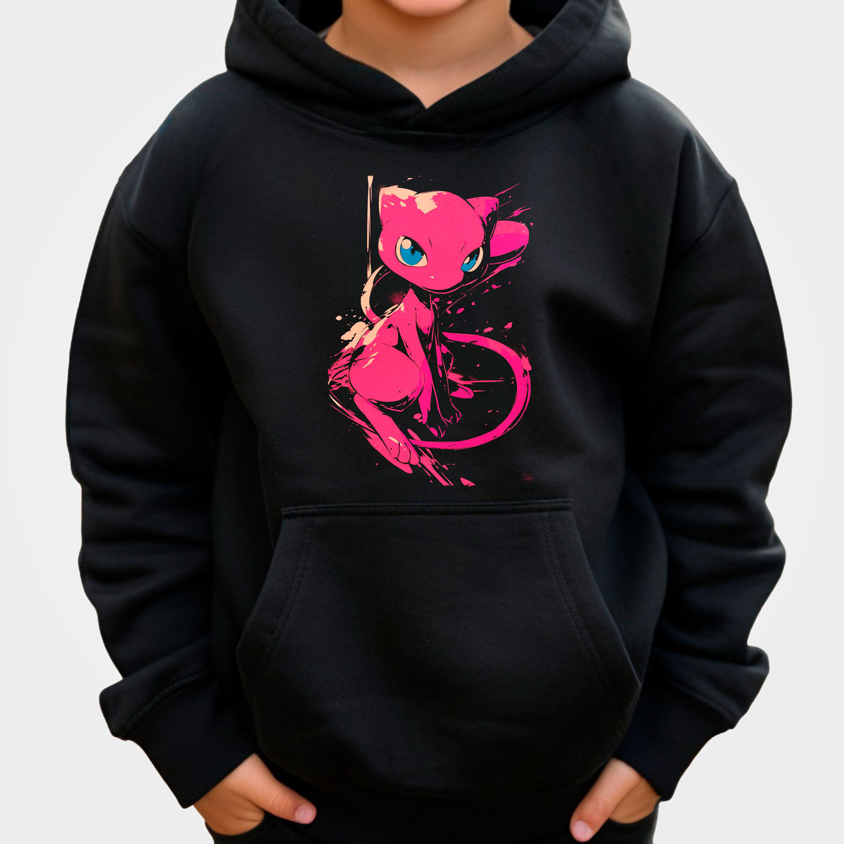 Hoodie Anime Niños Mew Pokémon Fondo Negro Brillante