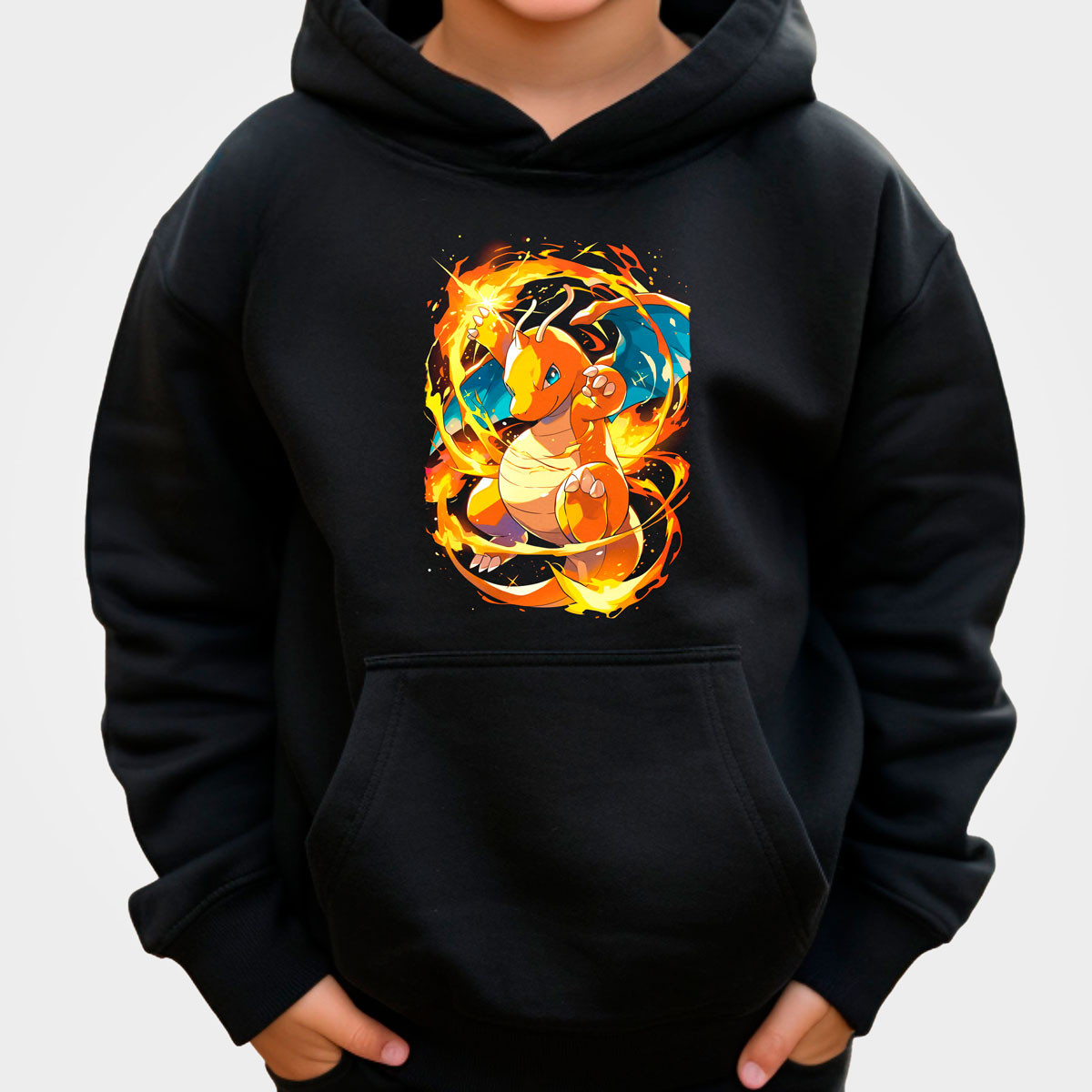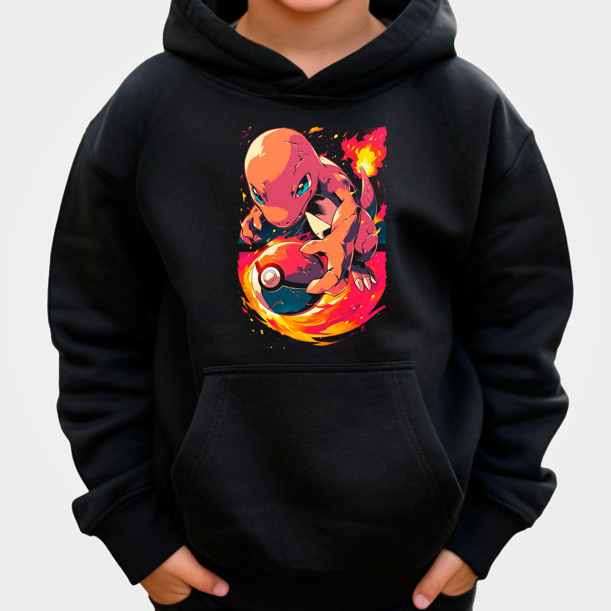 Hoodie Anime Niños Charmander Shiny Estampada Black