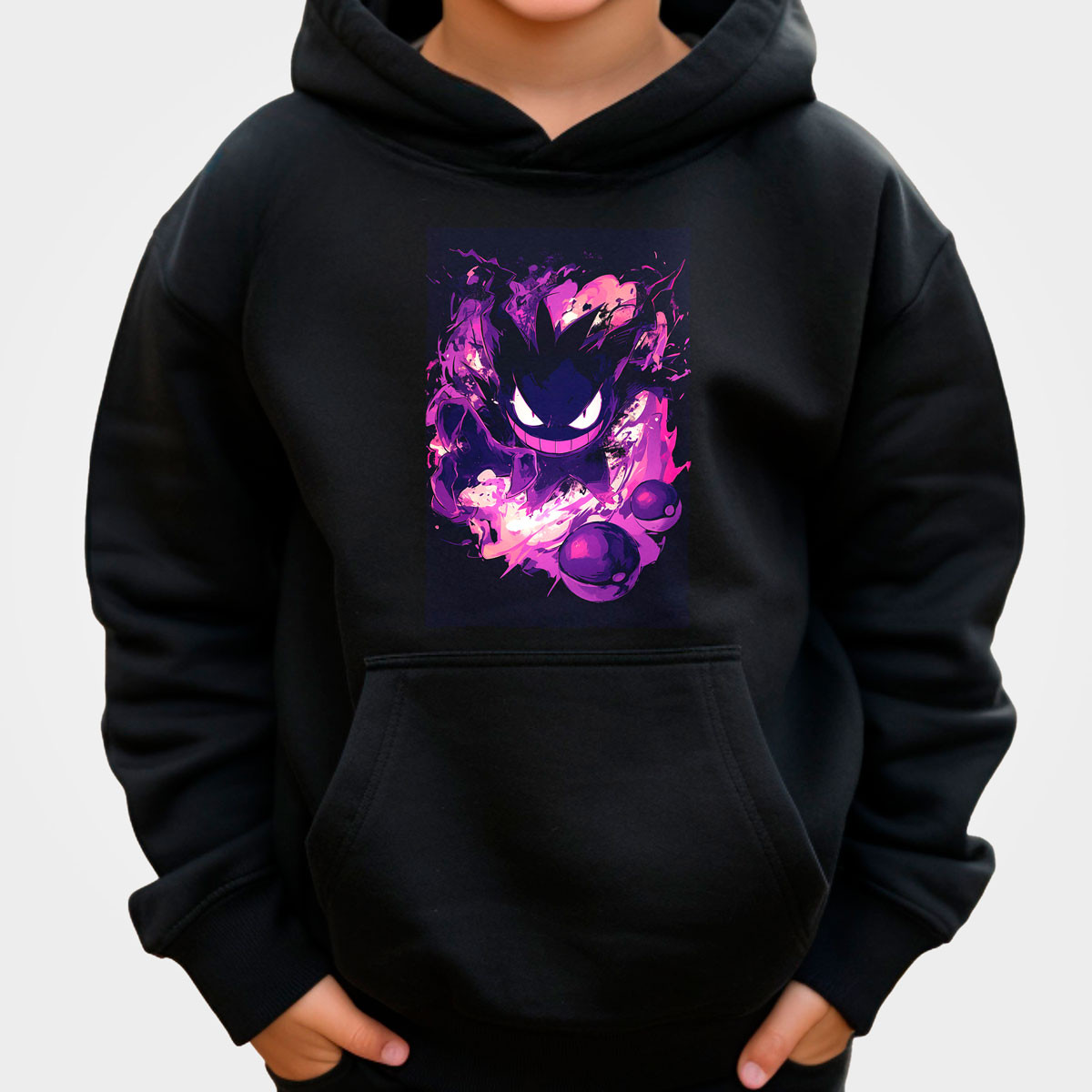 Hoodie Anime Niños Gastly Atacando Pokemon Negro