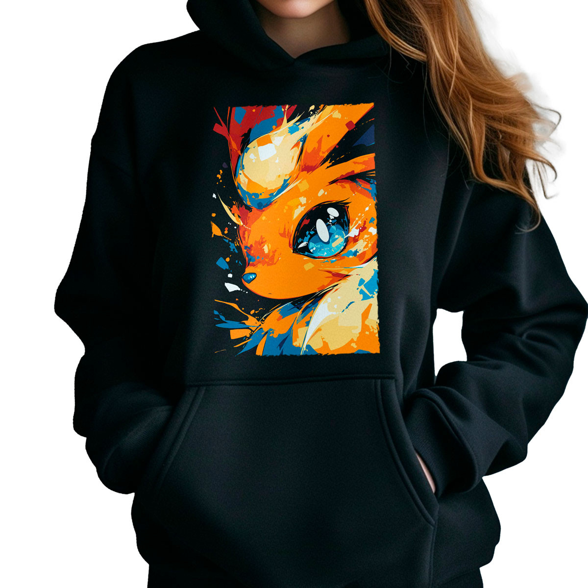 Para un look increíble, combina este canguro de Flareon con unos jeans ajustados y zapatillas blancas Ideal para destacar tu estilo y pasión por Pokémon