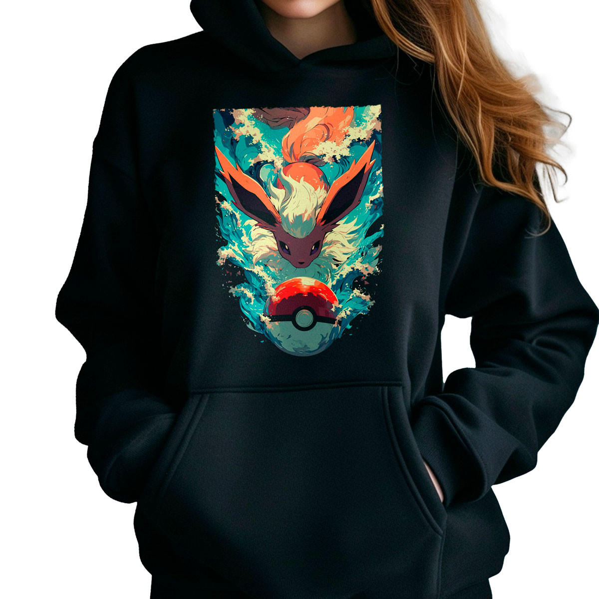 Hoodie Anime Flareon Lotus Sudadera Anime Entrenador Brillante