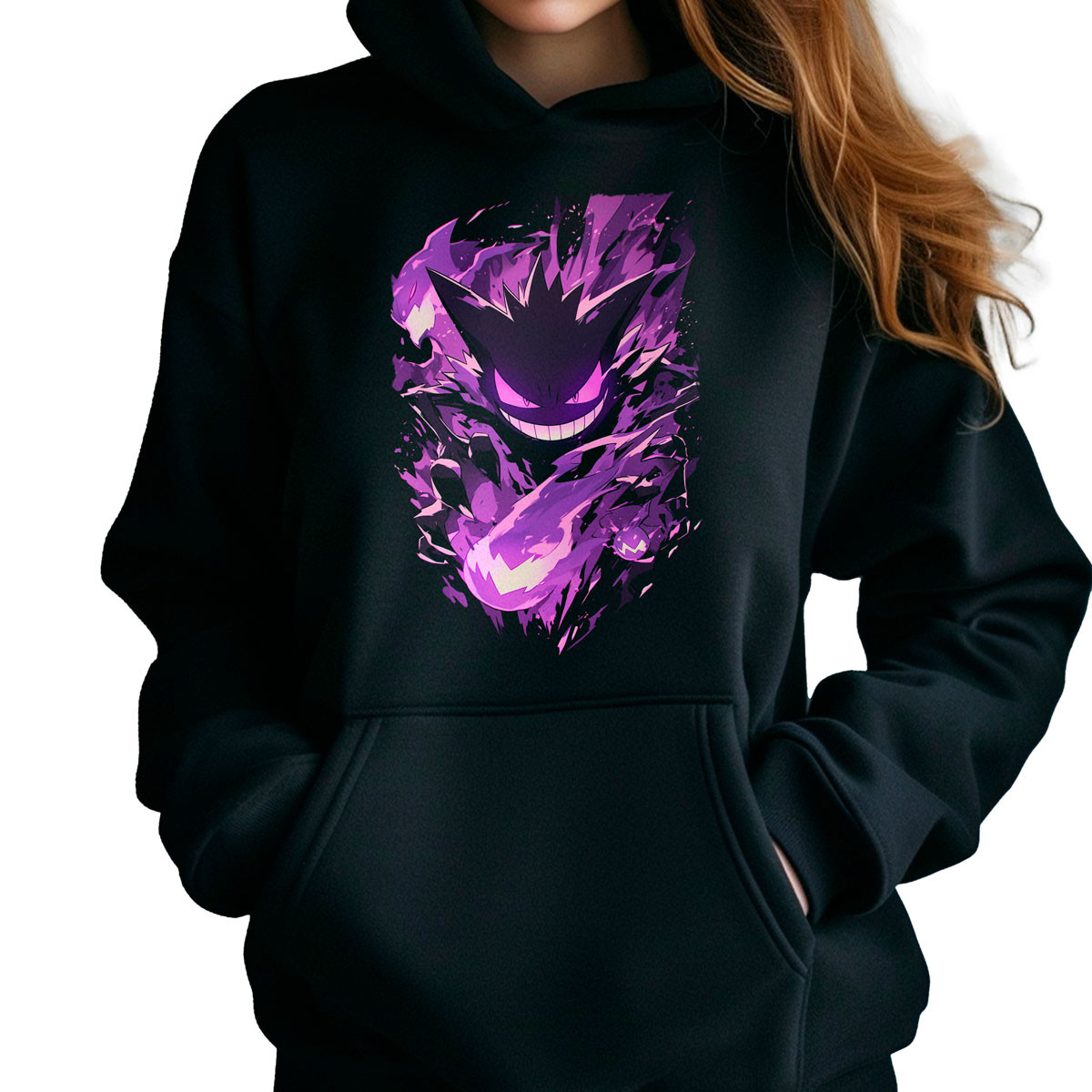 Hoodie Anime Haunter Pokemon Negro Estampado Brillante