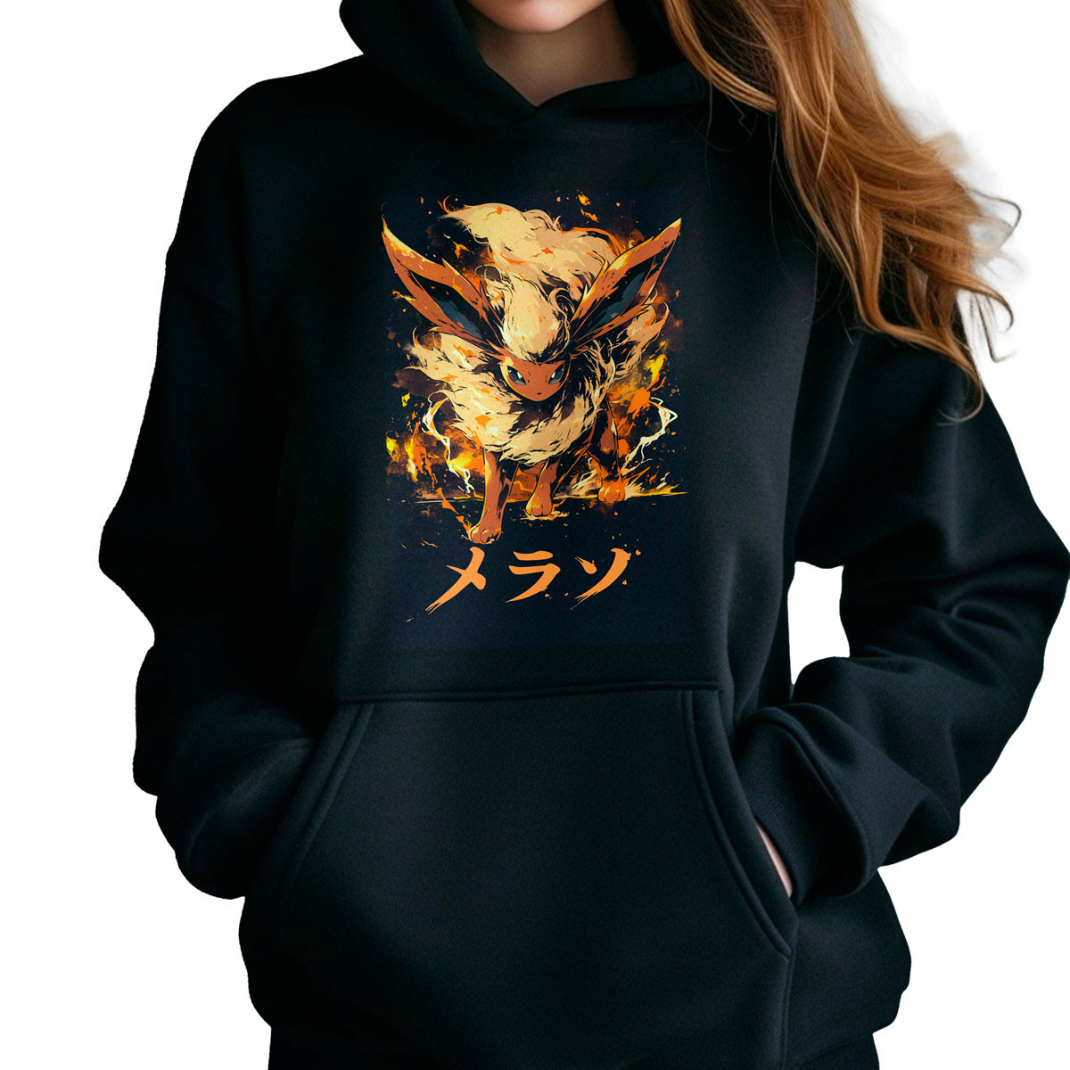 Combina la Polera Hoodie Anime Mujer Flareon Ink Style con unos jeans ajustados y zapatillas deportivas para un look casual y lleno de estilo Atrévete a mostrar tu pasión por el anime con esta prenda única