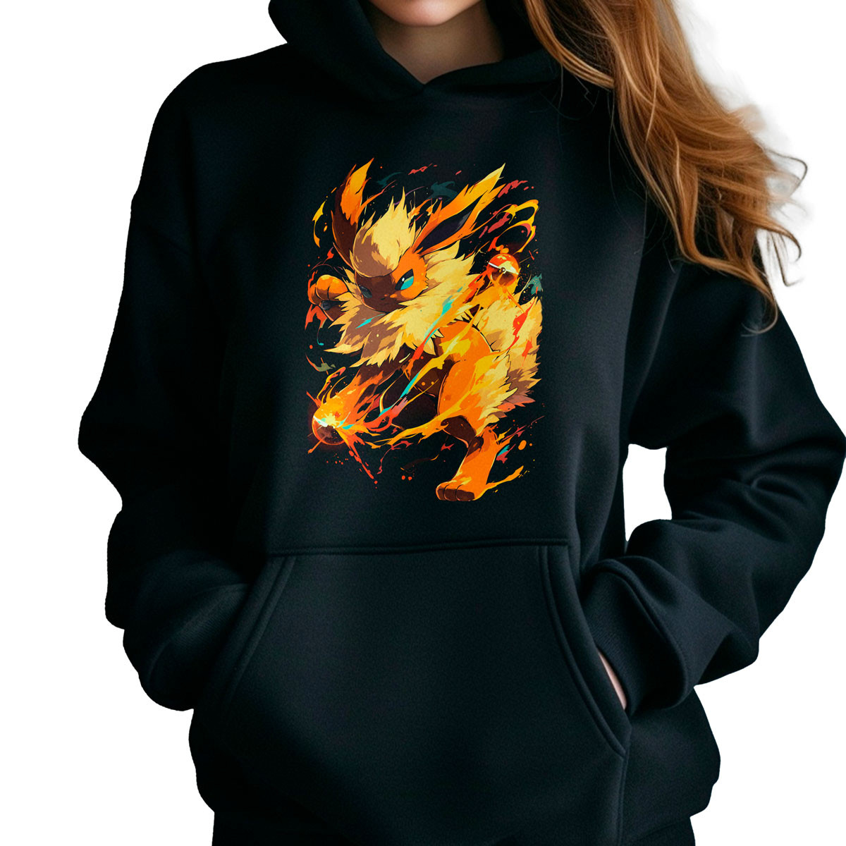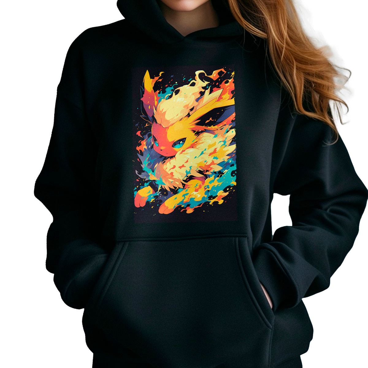 En Unika te ofrecemos entregas rápidas en Santiago y envíos express a regiones Adquiere ya tu Polera Hoodie Flareon Pokemon y destaca con un estilo único y original Combínala con unos jeans ajustados para un look casual y auténtico ¡Dale vida y estilo a tu guardarropa con nuestras Poleras Exclusivas! Diseños únicos y originales que destacan por su calidad y elegancia, convirtiéndose en el complemento perfecto para cualquier ocasión.