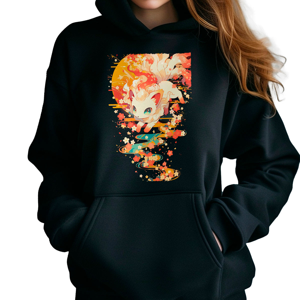Hoodie Anime Mujer Vulpix Diseño Cerezo Pokémon.