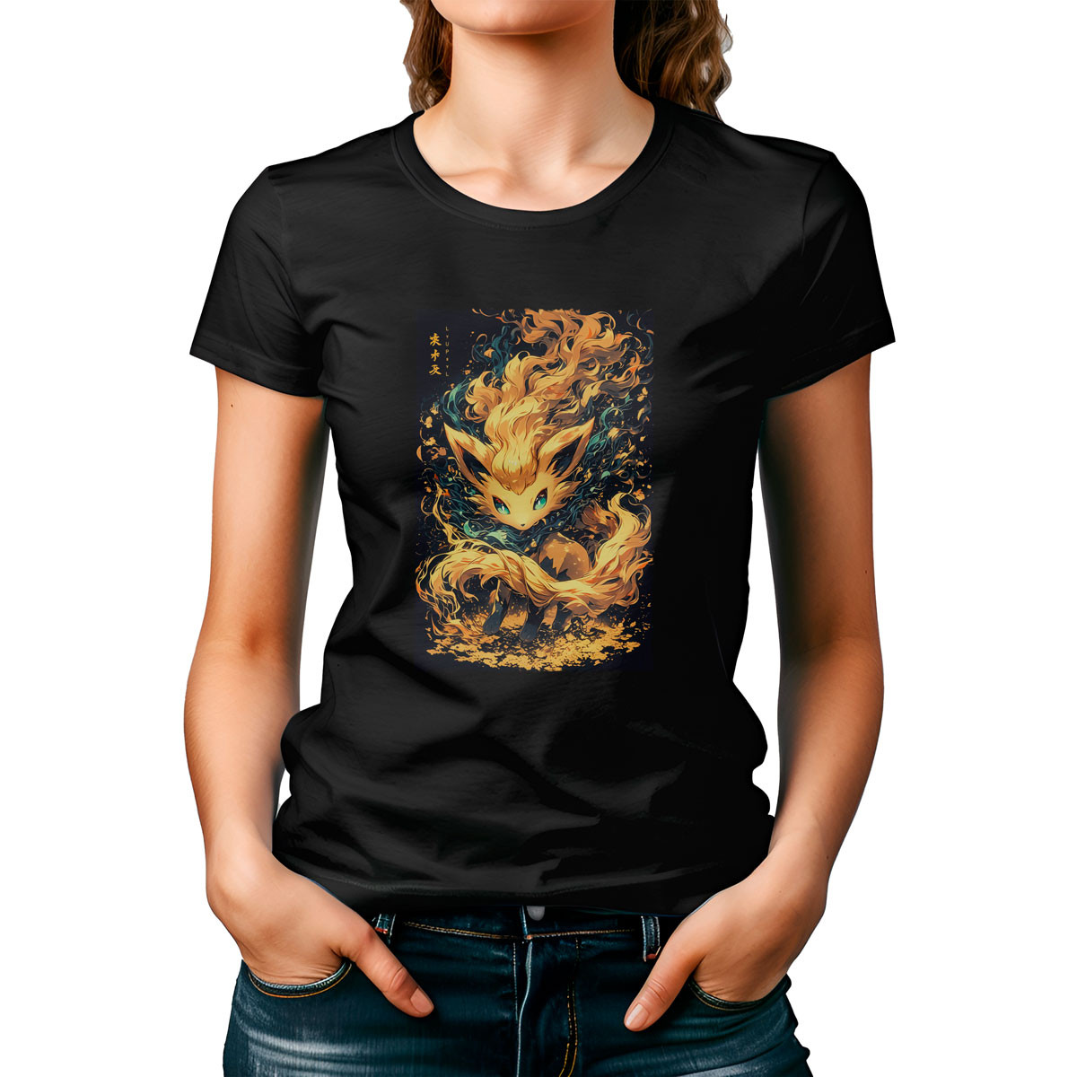 Polera Estampada Frontal Batallas Pokémon Vulpix Anime Negra