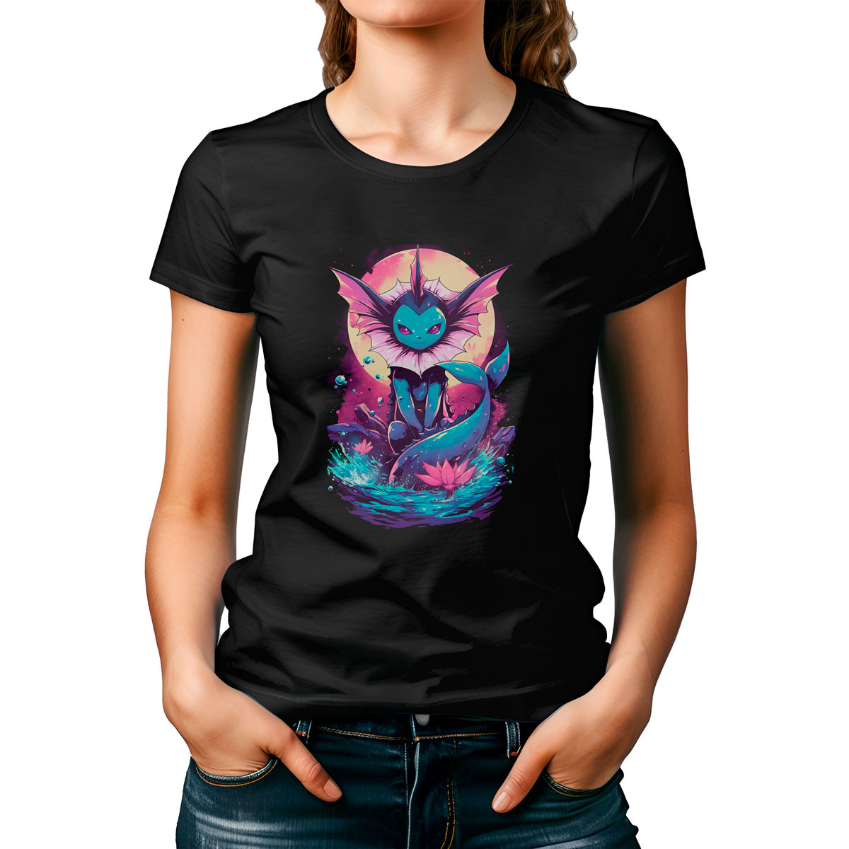 Para un look original, combina esta Polera con unos jeans ajustados y zapatillas blancas El estampado de Vaporeon y las flores de cerezo le darán un toque único a tu outfit casual ¡Destaca con estilo y demuestra tu pasión por Pokémon!