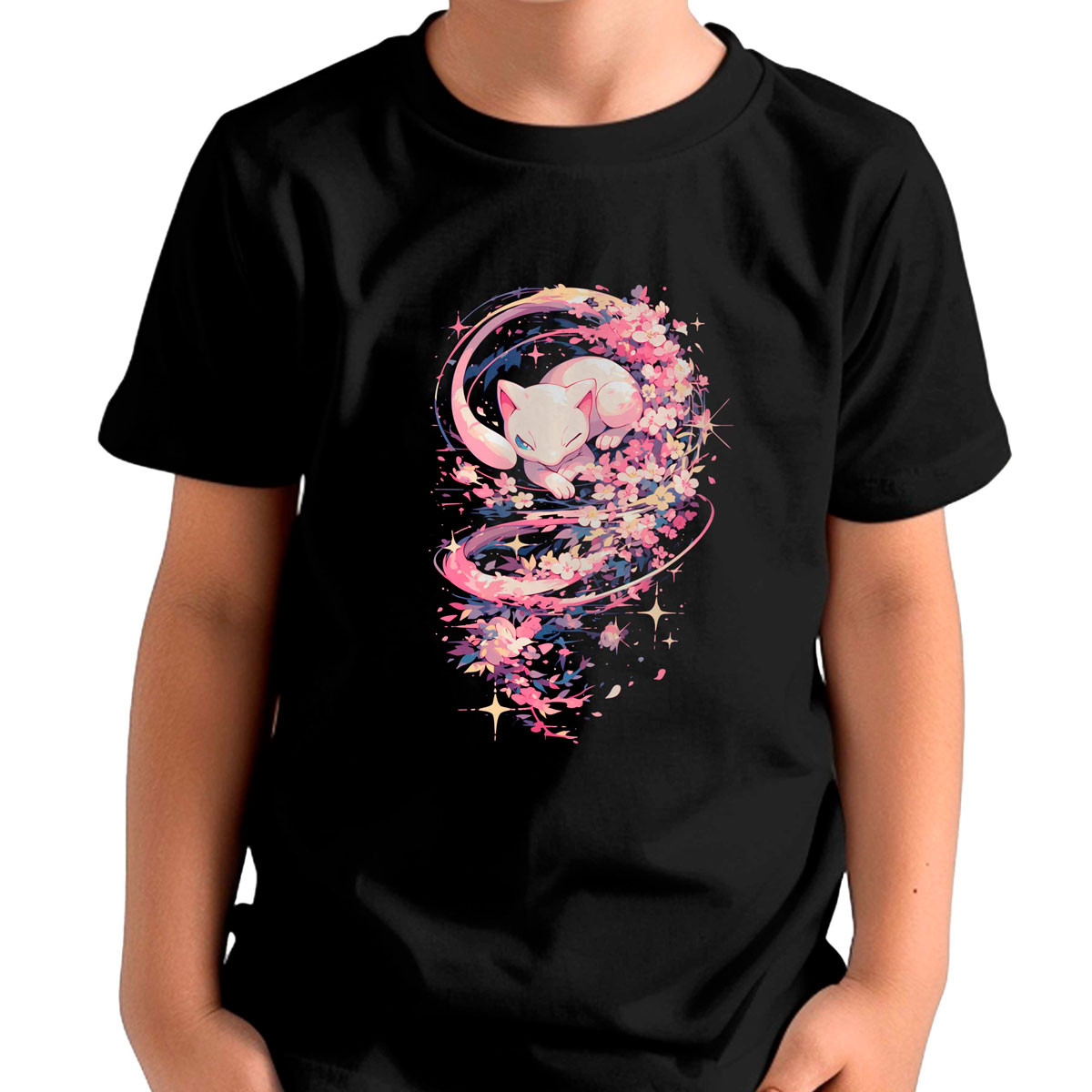 Polera Niña Mew Atacando Pokemon Negro Brillante 🖤