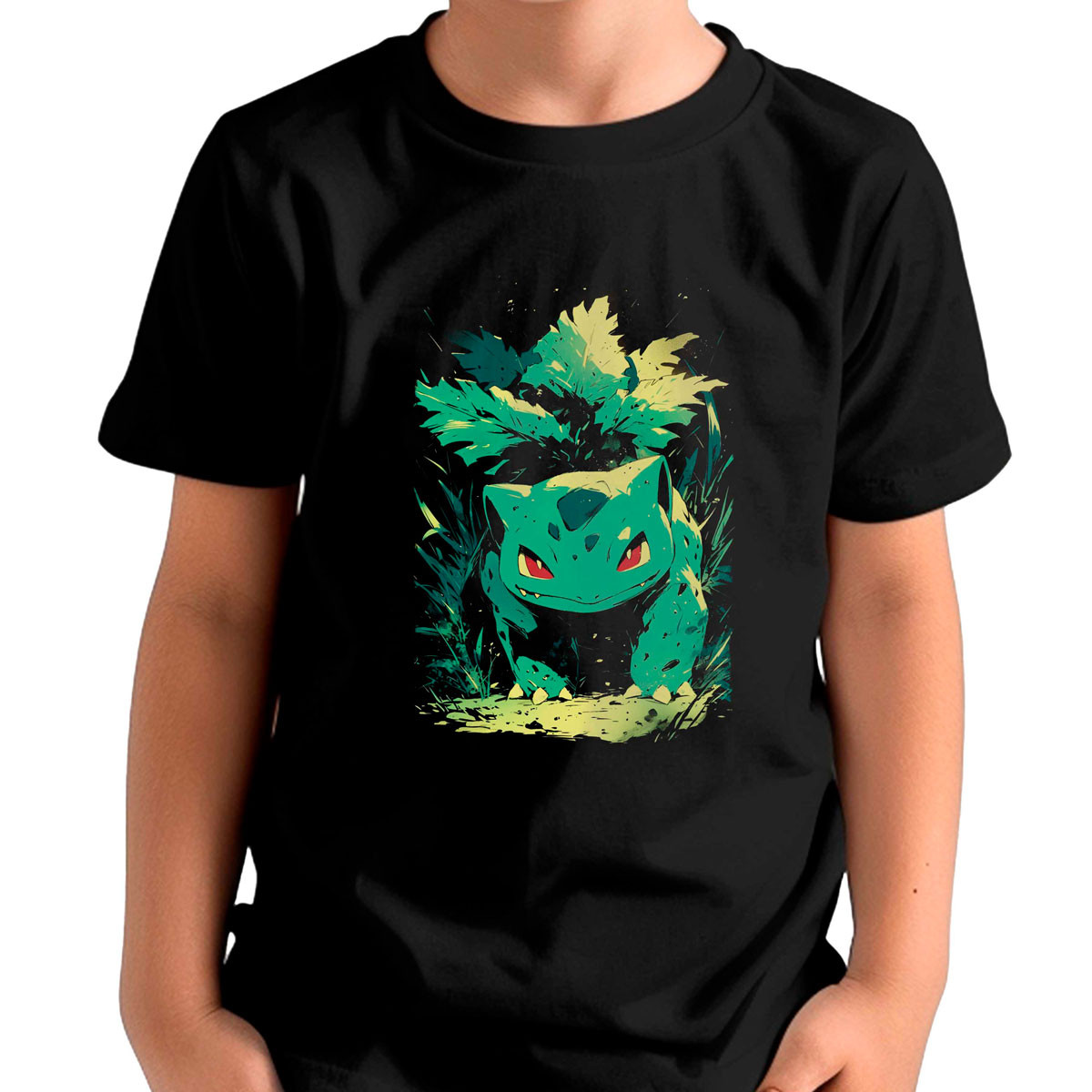 Polera Niñas Estampada Pokemon Ivysaur Glow Anime Negro 14