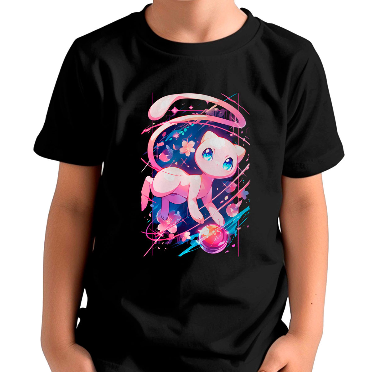 Polera Niño Estampada Pokémon Mew Cute En Fondo Negro