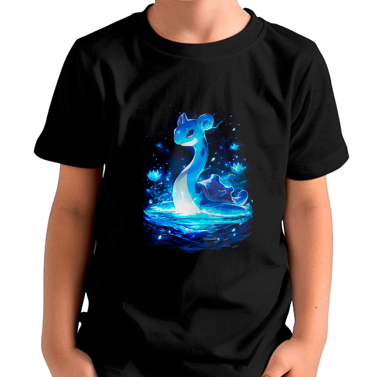 Polera Unisex Estampada Gym Lapras Brillante De Pokemon Anime Negro 14