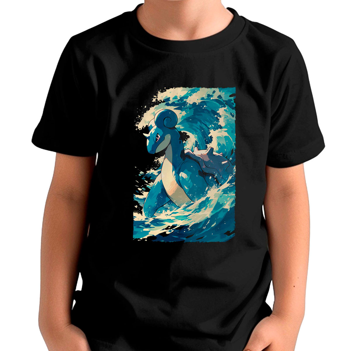 Poleras Estampada Batallas Pokémon Lapras Anime Fondo Negro 34