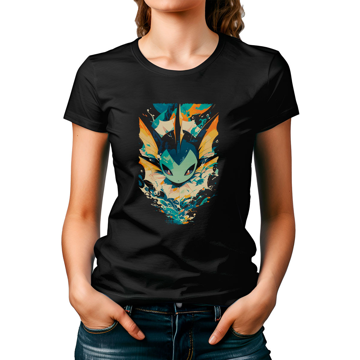 Poleras Mujer Estampada Gym Vaporeon Eyes CloseUp Pokémon