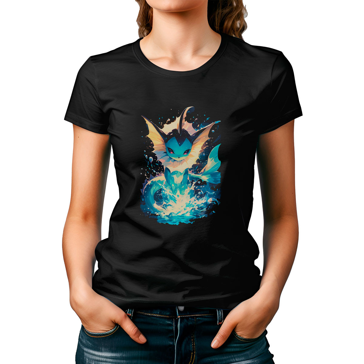 Para un look increíble, combina la Polera Mujer Vaporeon Luna con unos jeans ajustados y zapatillas blancas ¡Estarás lista para destacar en cualquier ocasión!