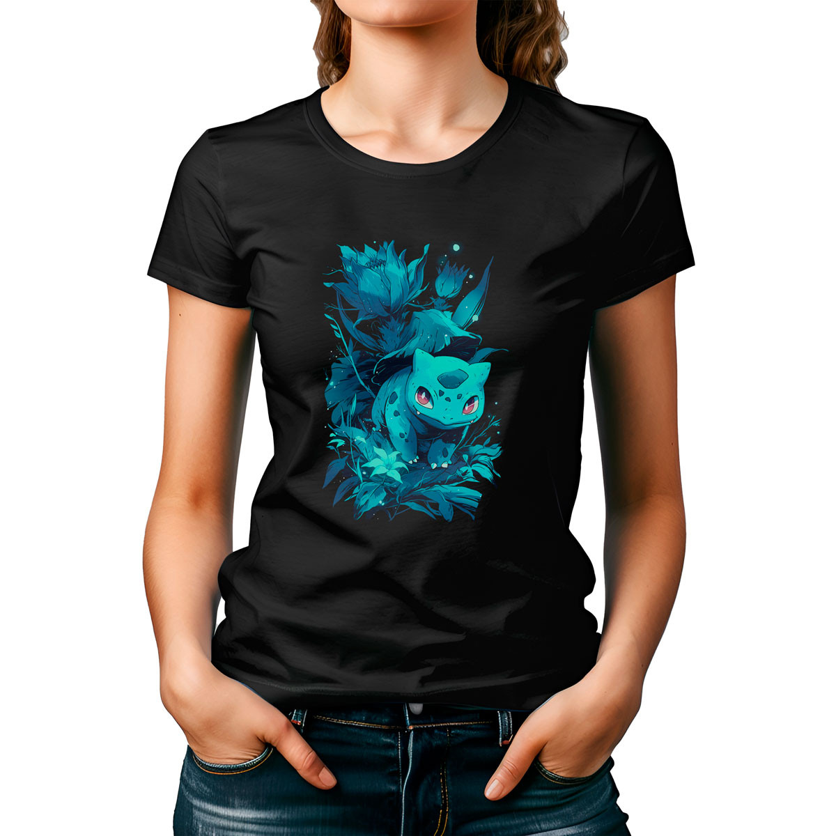 Poleras Negro Entrenador Ivysaur Anime Pokémon Full Power Brillante