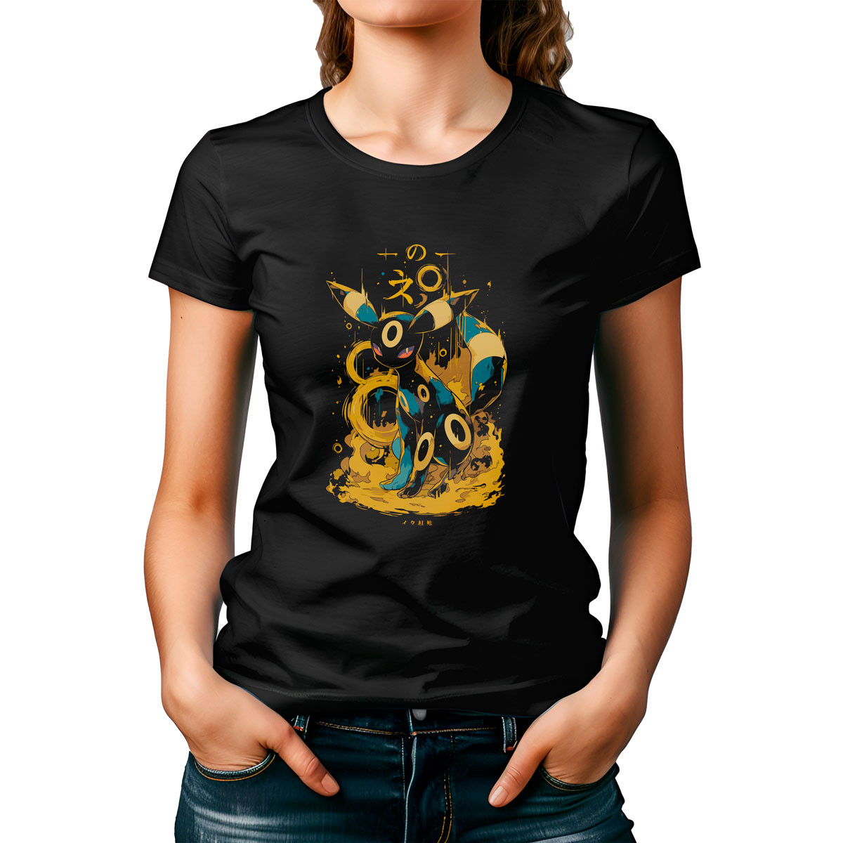 Combina la Polera Diseño Umbreon Pokémon con unos jeans y zapatillas blancas para un look casual y lleno de estilo Ideal para un día relajado o una salida con amigos ¡Demuestra tu pasión por los Pokémon con esta increíble Polera de Unika!