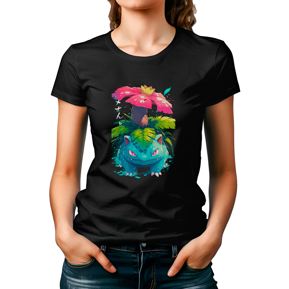 Para un look increíble, combina la Polera Venusaur Shiny Gym Anime con unos jeans ajustados y zapatillas blancas ¡Destaca tu pasión por el anime con estilo y originalidad!