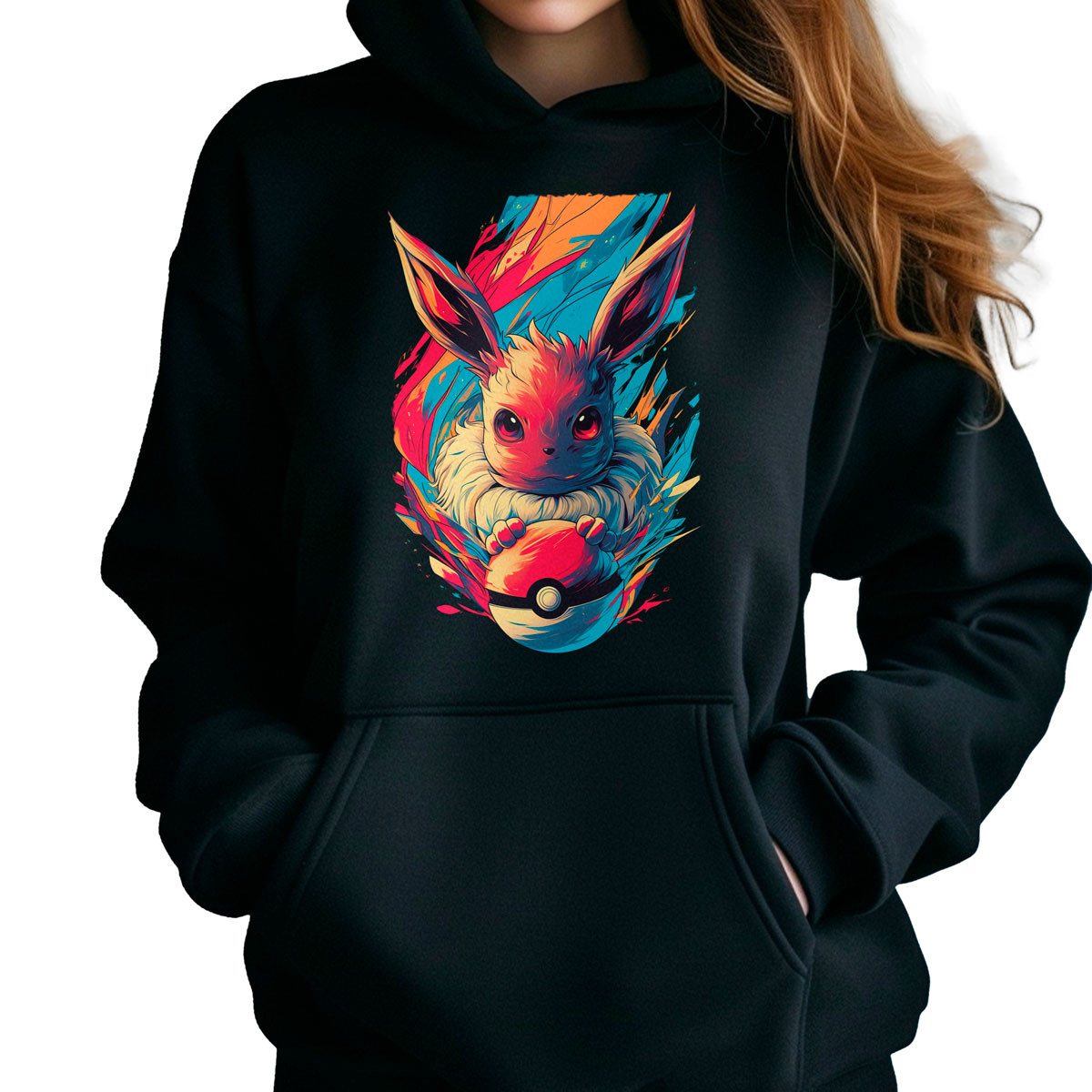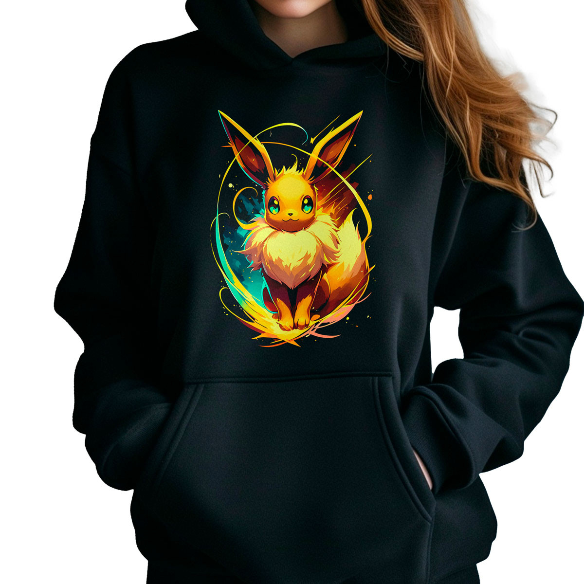 Para un look increíble, combina este Poleron Anime con Capucha de Eevee Silueta Pokémon 23 con unos jeans ajustados y zapatillas blancas ¡Estarás listo para destacar con estilo en cualquier ocasión!