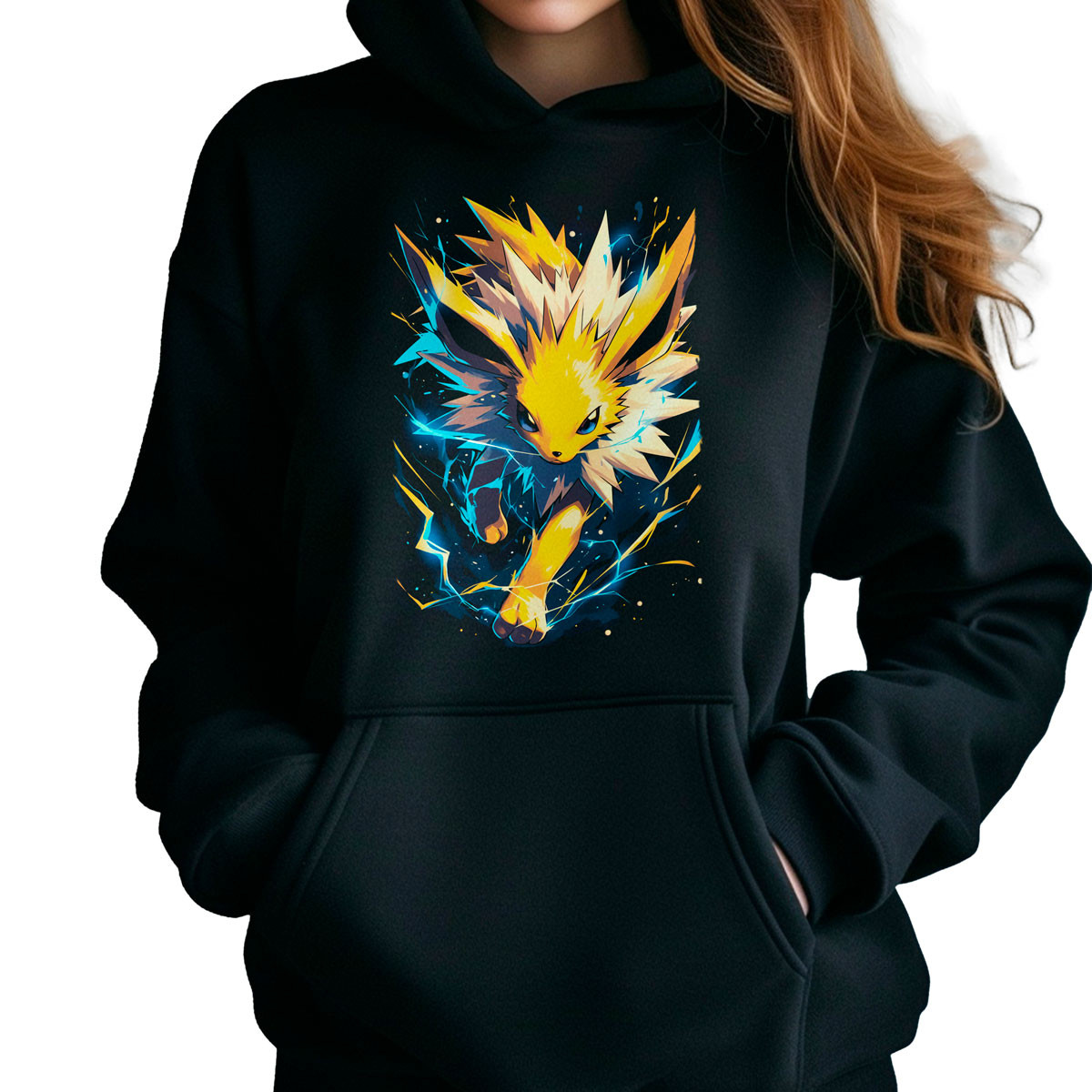 Combina el Polerón Anime Jolteon Atacando con unos pantalones jogger y unas zapatillas blancas para un outfit casual y lleno de estilo Añade unos accesorios minimalistas para resaltar el diseño exclusivo de la polera ¡Destaca tu pasión por Pokemon con este increíble polerón de Unika!