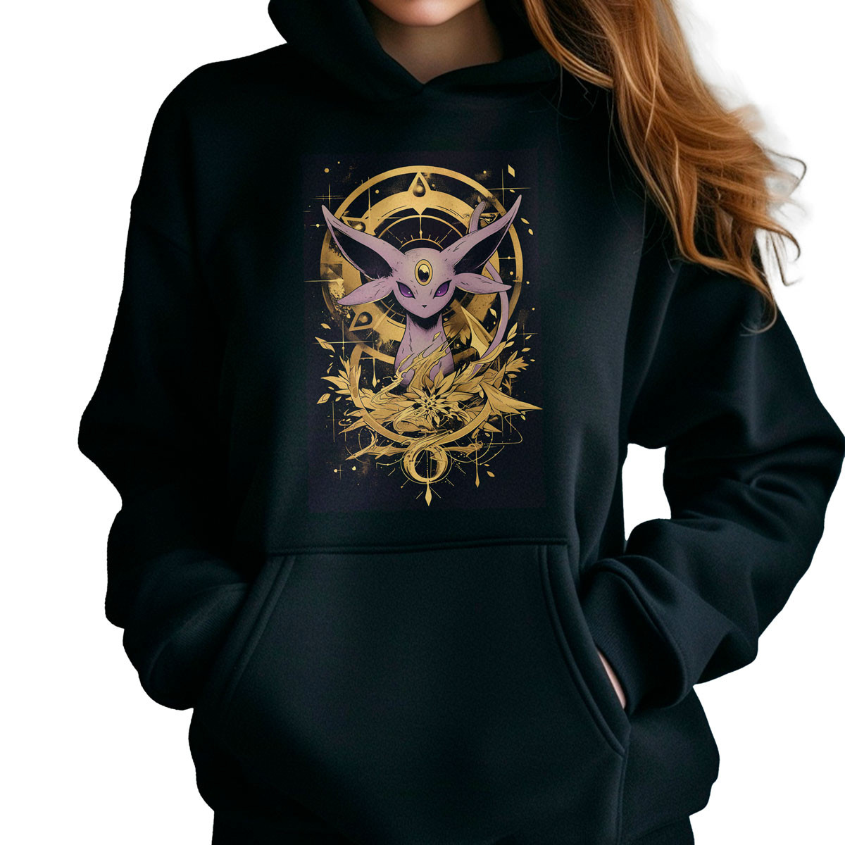 Polerones Anime Mujer Negro Shiny Con Diseño Espeon Future Sight